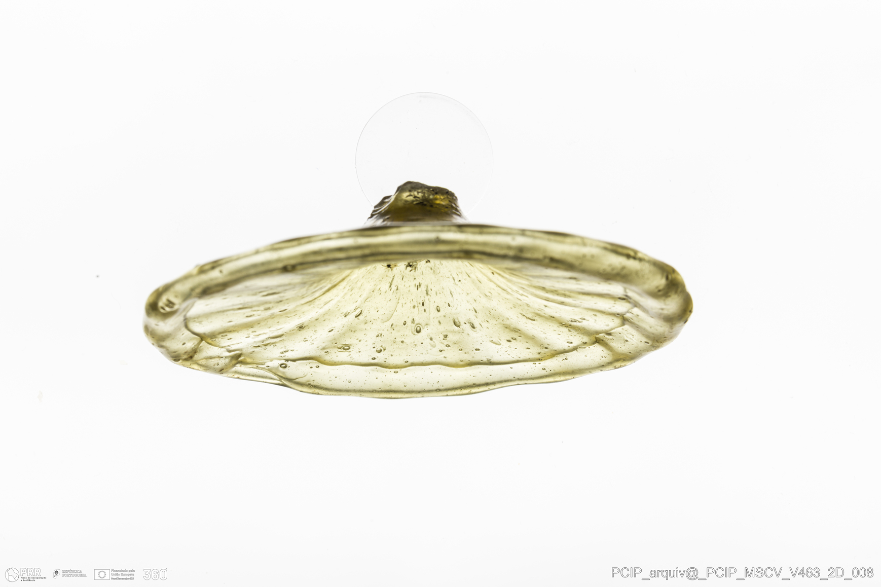 Matéria/Técnica: Vidro; Cronologia: Século XVII; Autoria: Desconhecida; Dimensões: Diâmetro Base: 77mm.