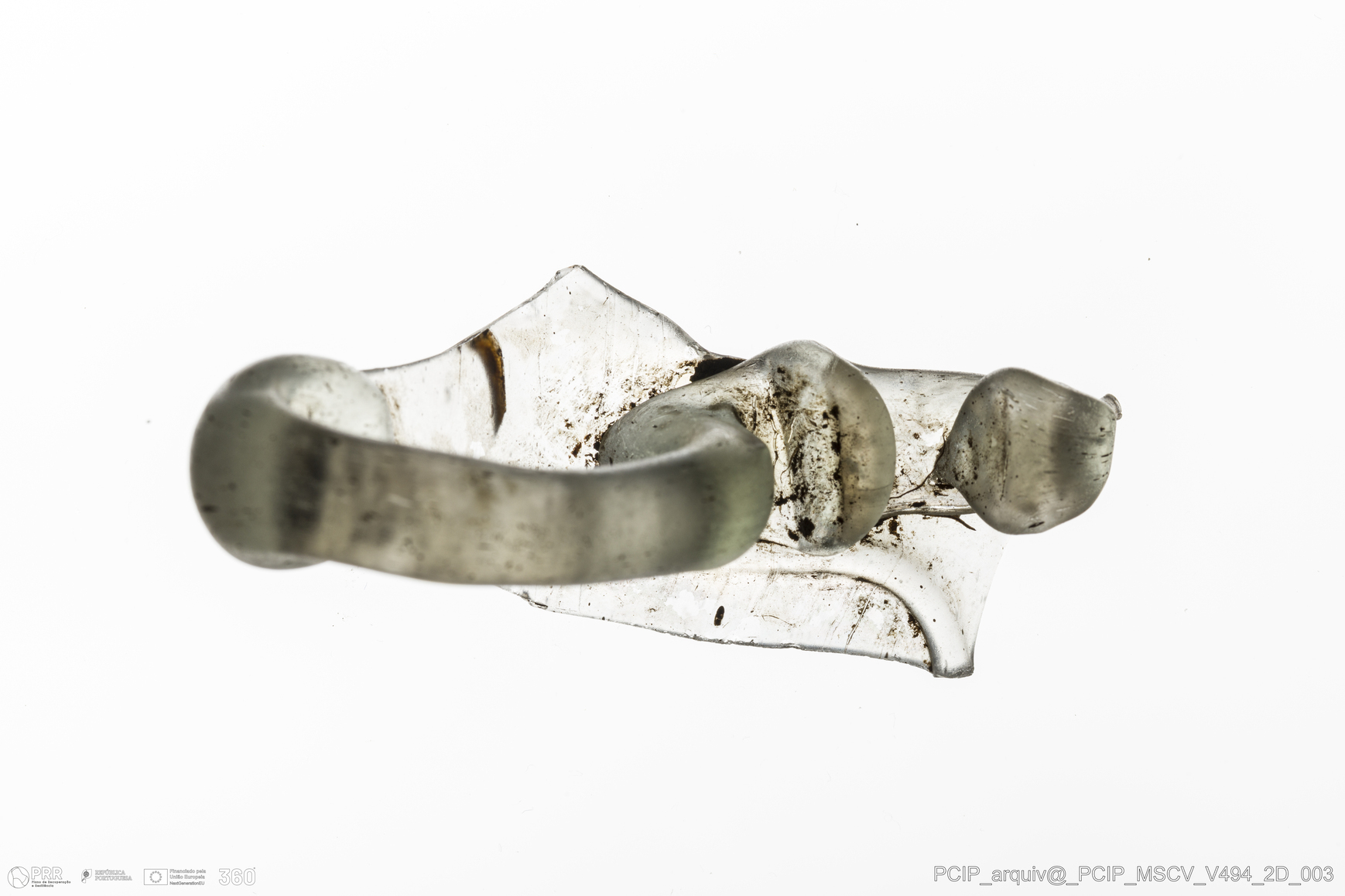 Matéria/Técnica: Vidro; Cronologia: Século XVII; Autoria: Desconhecida; Dimensões: Largura: 25mm; Altura: 65mm.