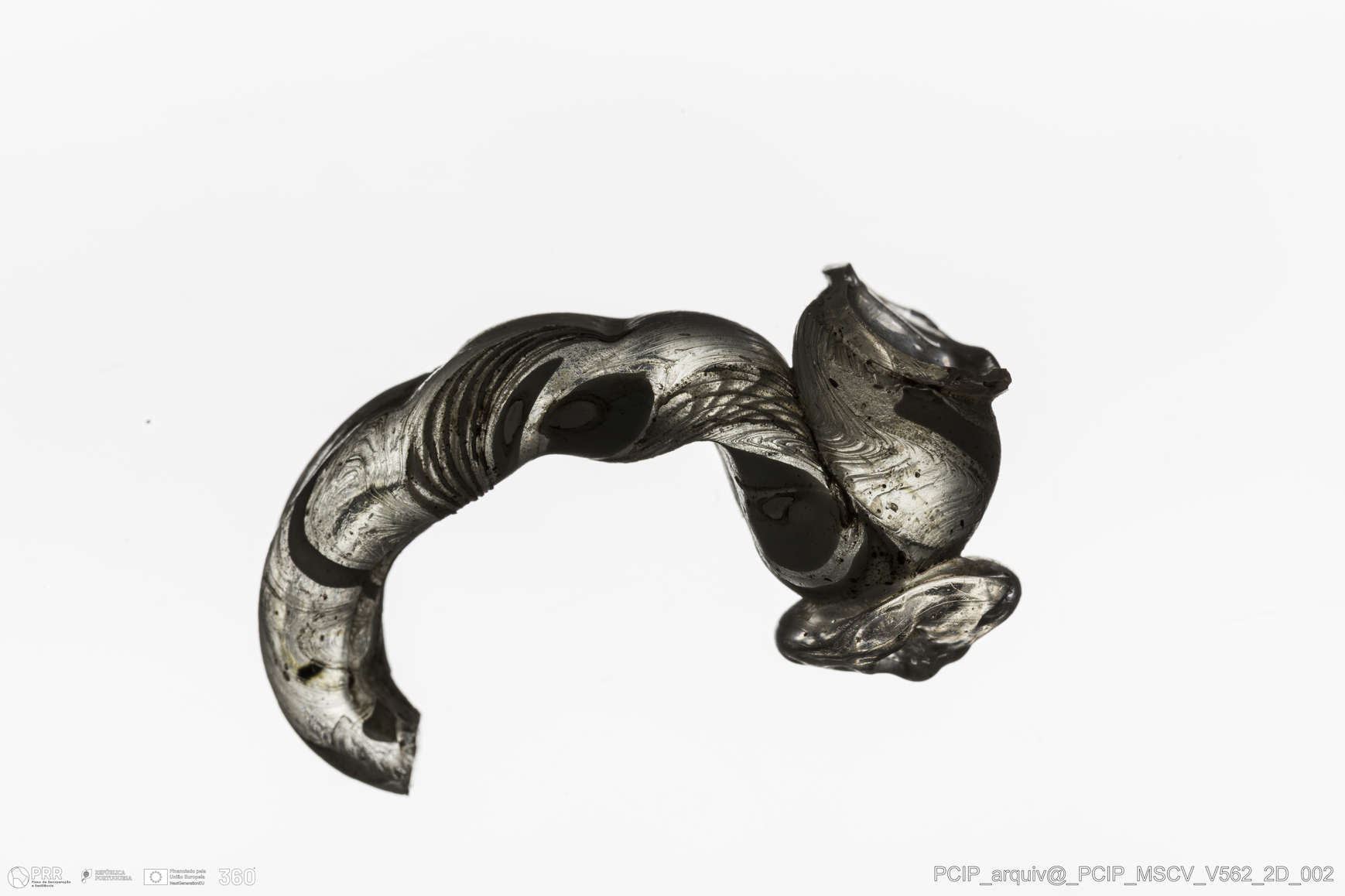 Matéria/Técnica: Vidro; Cronologia: Século XVII; Autoria: Desconhecida; Dimensões: comprimento: 42mm; Largura: 17mm.