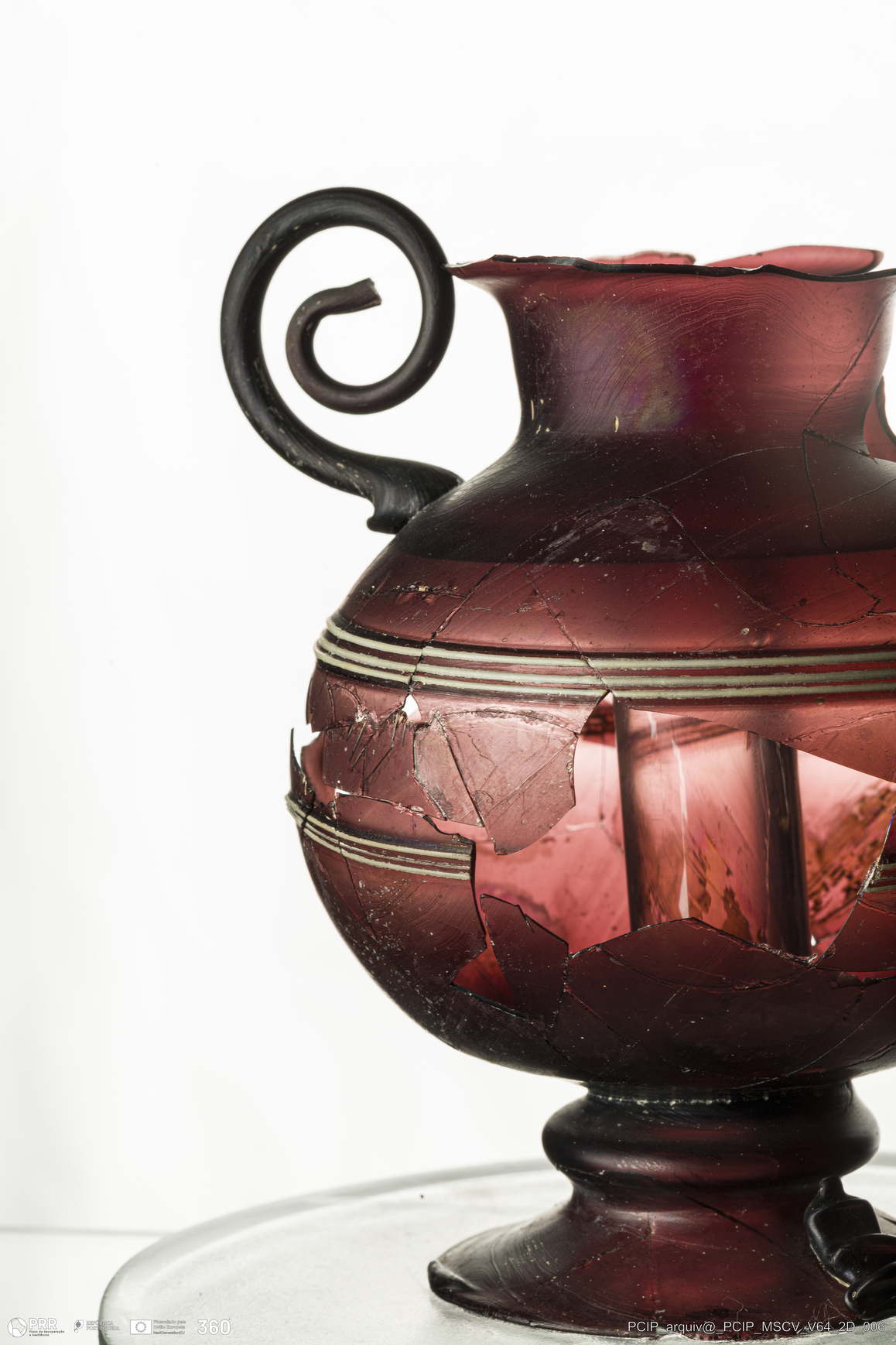 Matéria/Técnica: Vidro; Cronologia: Século XVII; Autoria: Desconhecida; Dimensões: Altura: 100mm; Diâmetro máximo: 89mm; Diâmetro da base: 62mm; Diâmetro do bordo: 56mm.