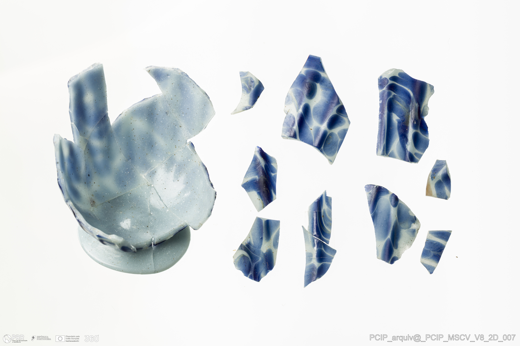 Matéria/Técnica: Vidro; Cronologia: Século XVII; Autoria: Desconhecida; Dimensões: Diâmetro bordo: 70mm; Diâmetro base: 35mm; Altura: 81mm.