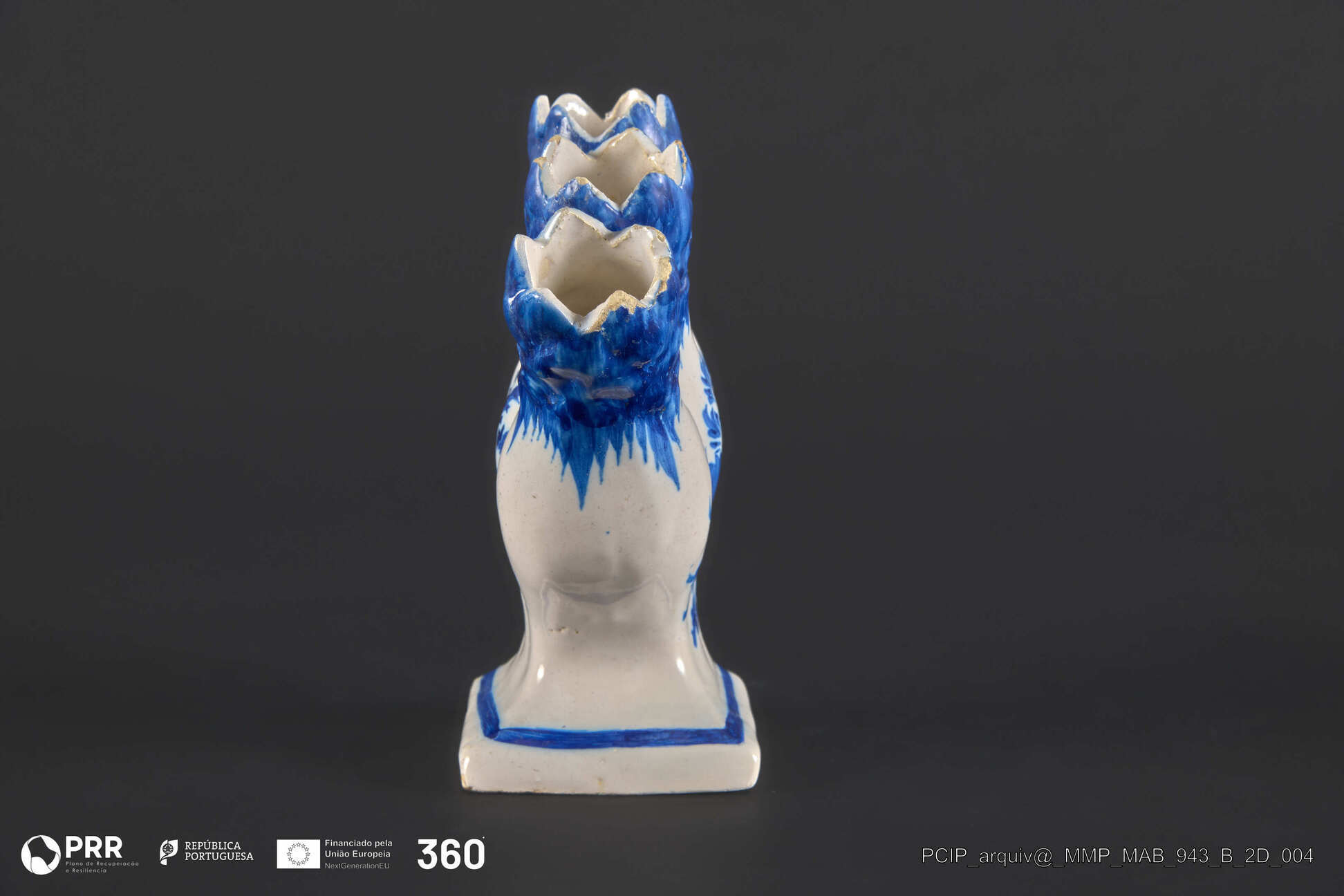 Matéria/Técnica: Faiança moldada e vidrada. Decoração pintada e relevada; Cronologia: Desconhecida; Autoria: Desconhecida; Dimensões: Desconhecidas.