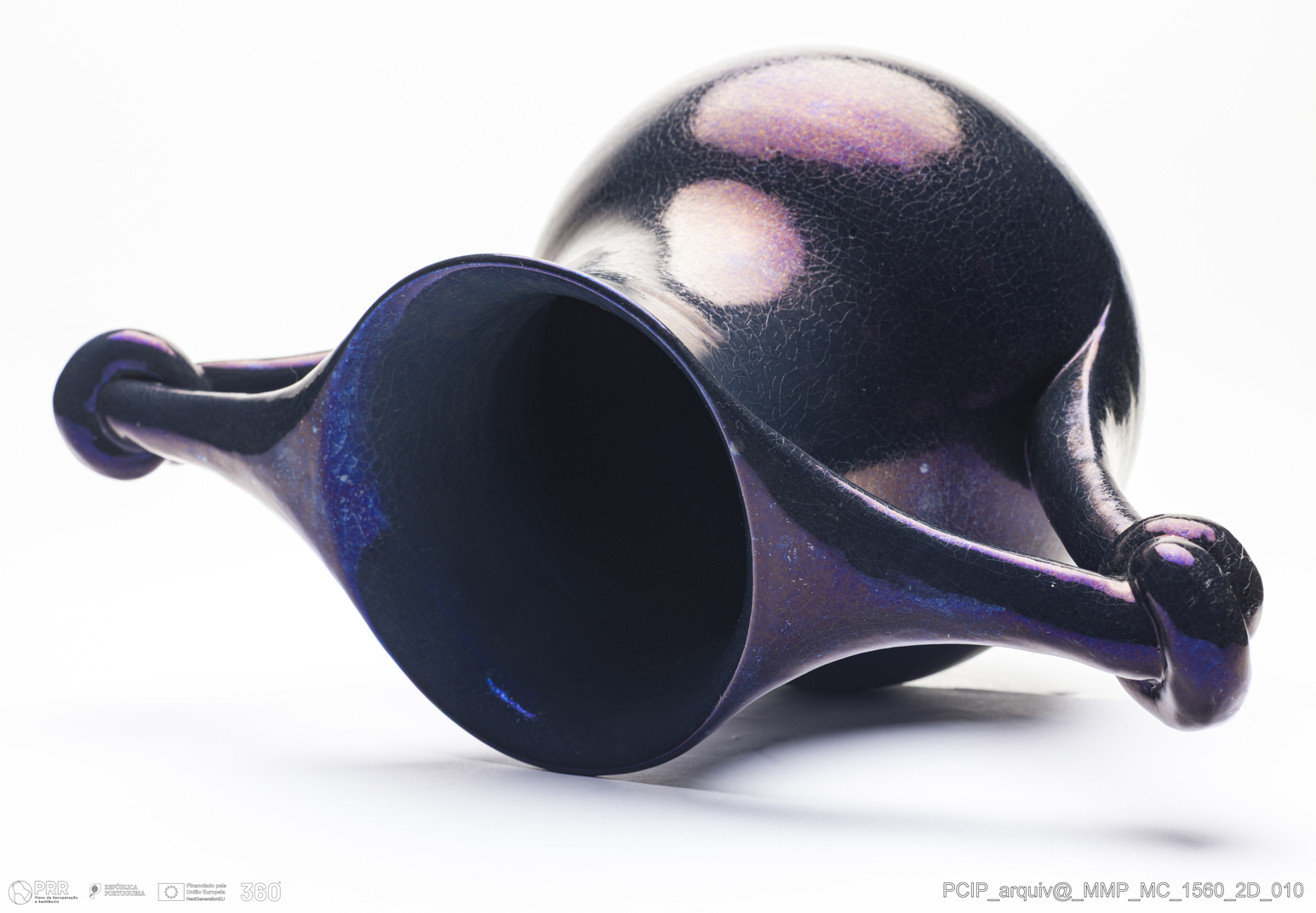 Matéria/Técnica: Barro vermelho moldado. Vidrado monocromo azul cobalto metalizado; Cronologia: 1912; Autoria: António Augusto da Costa Motta / Fábrica de Faianças das Caldas da Rainha, Portugal; Dimensões (cm): Altura: 22; Largura: 32; Comprimento: 19.