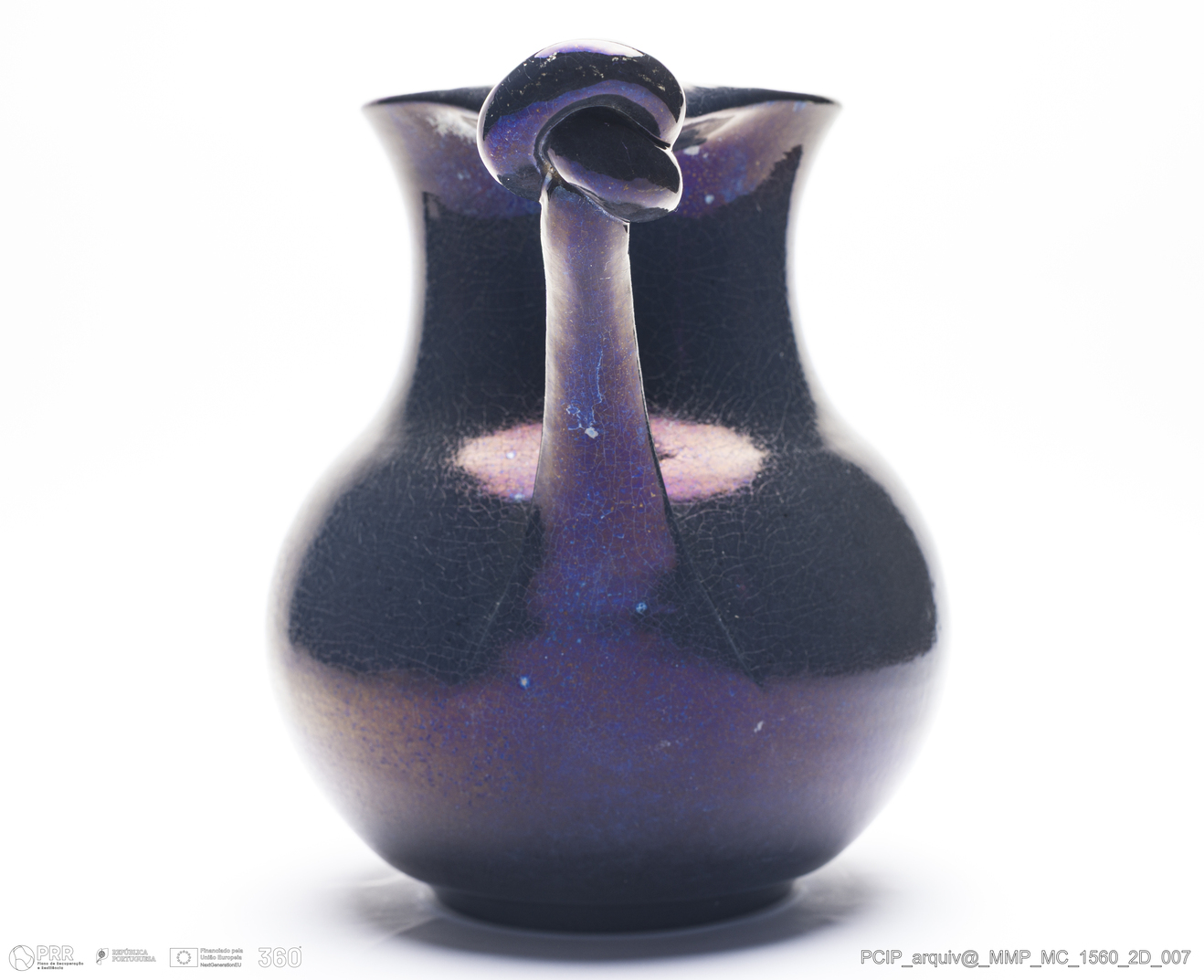 Matéria/Técnica: Barro vermelho moldado. Vidrado monocromo azul cobalto metalizado; Cronologia: 1912; Autoria: António Augusto da Costa Motta / Fábrica de Faianças das Caldas da Rainha, Portugal; Dimensões (cm): Altura: 22; Largura: 32; Comprimento: 19.