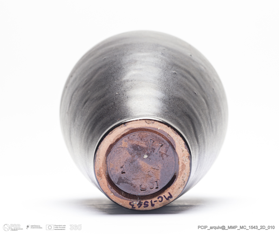 Matéria/Técnica: Barro rodado e moldado. Vidrado polícromo: castanho escuro mate e verde; Cronologia: 1908; Autoria: Manuel Gustavo Bordalo Pinheiro / Fábrica Bordalo Pinheiro, Caldas da Rainha, Portugal; Dimensões (cm): Altura: 16; Diâmetro: 13.