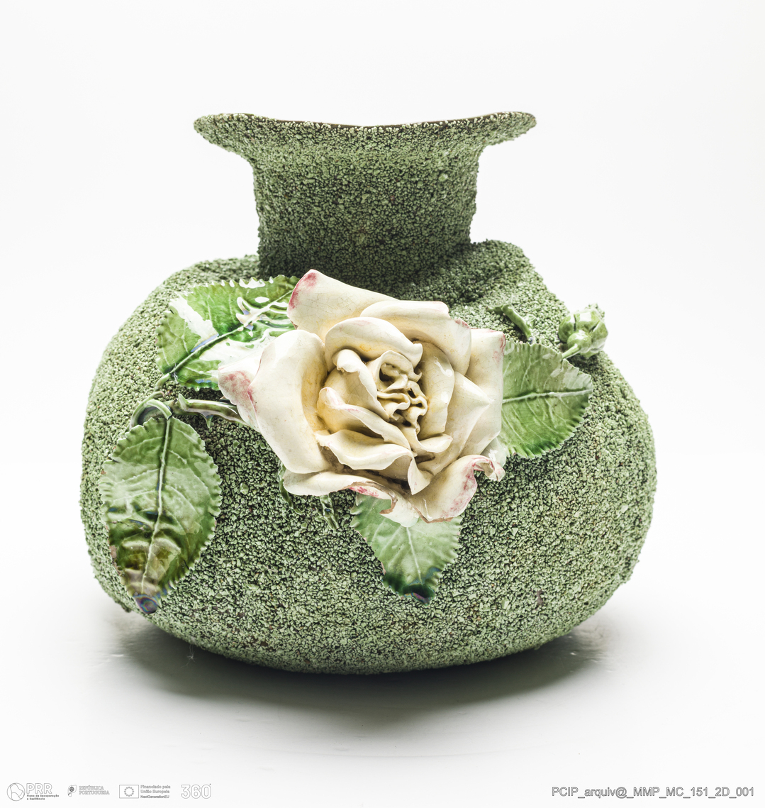 Matéria/Técnica: Barro vermelho moldado e modelado. Vidrado polícromo: verde, branco e amarelo. Musgados; Cronologia: 1900; Autoria: Rafael Bordalo Pinheiro / Fábrica De Faianças Bordalo Pinheiro, Caldas da Rainha, Portugal; Dimensões (cm): Altura: 18; Largura: 31; Comprimento: 20.