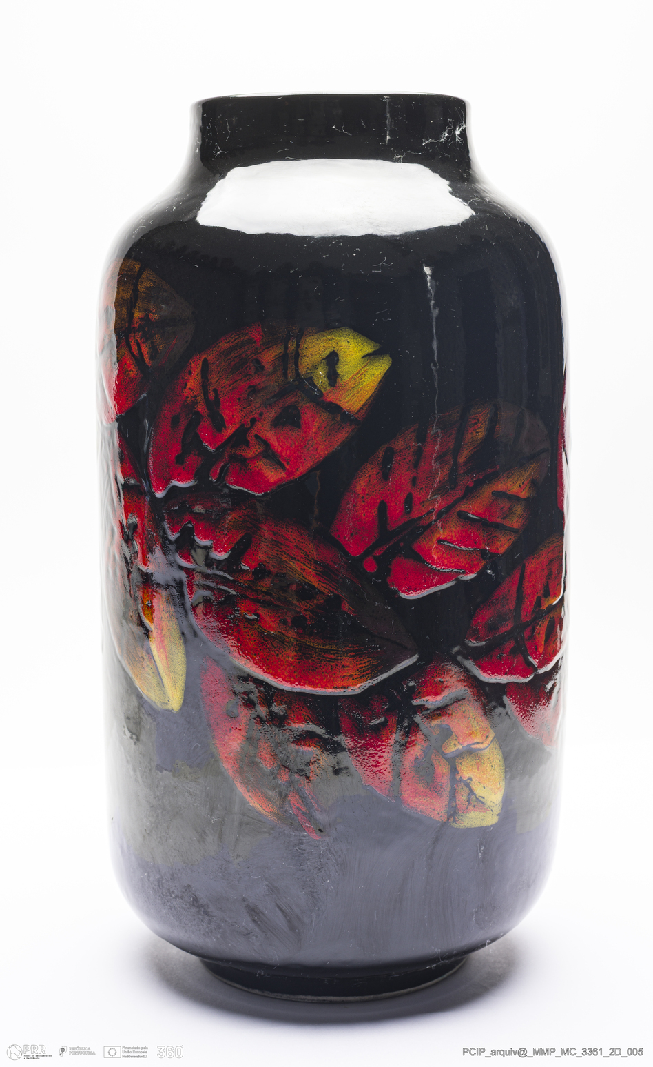 Matéria/Técnica: Faiança rodada. Vidrado polícromo: preto, castanho, vermelho, verde e amarelo; Cronologia: 1950-1960; Autoria: Raymor Bitossi / Itália; Dimensões (cm): Altura: 33,2; Diâmetro: 18,7.