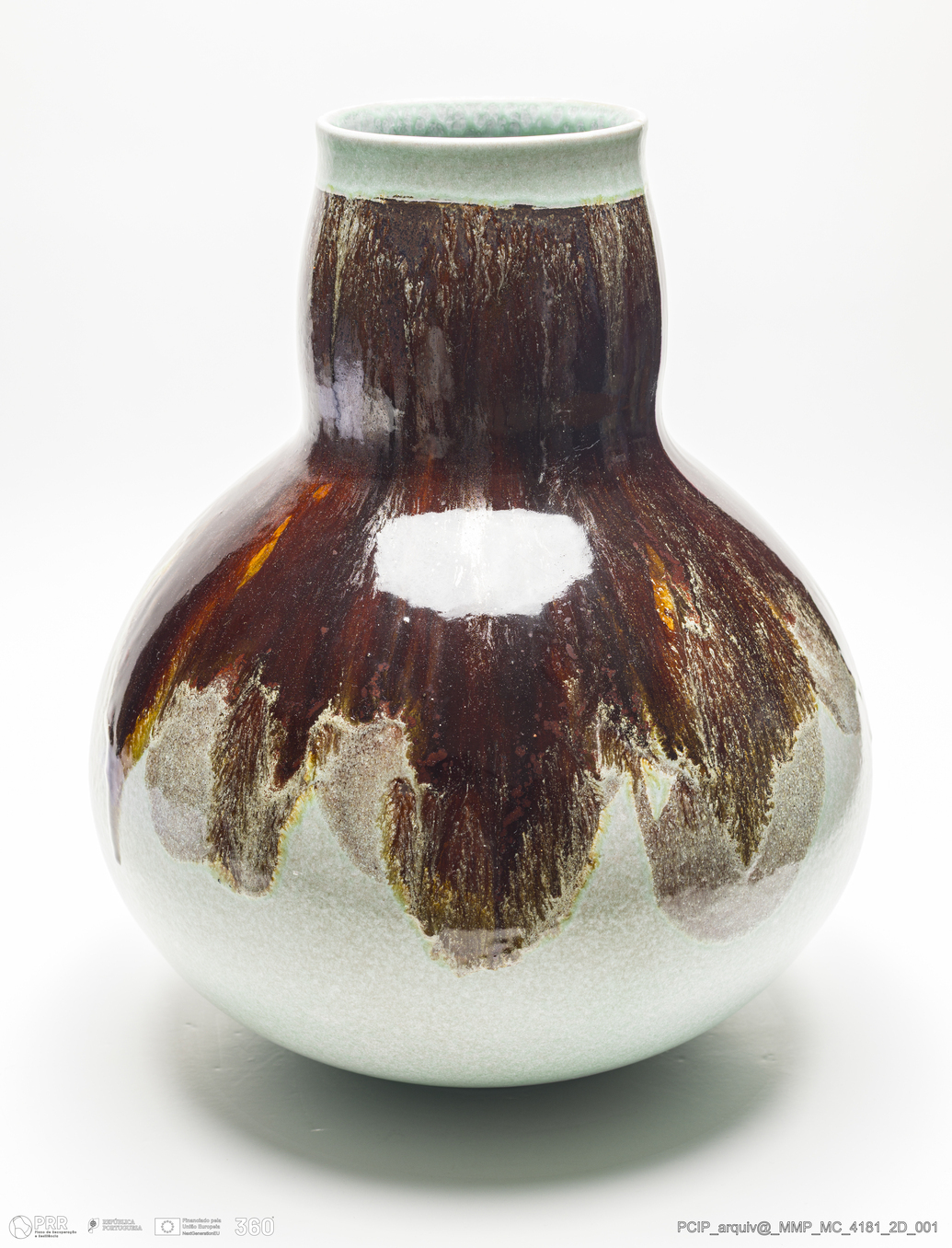 Matéria/Técnica: Barro vermelho rodado. Vidrado polícromo: castanho e verde; Cronologia: século XX; Autoria: Desconhecido / Itália; Dimensões (cm): Altura: 38,5; Diâmetro: 31,5.