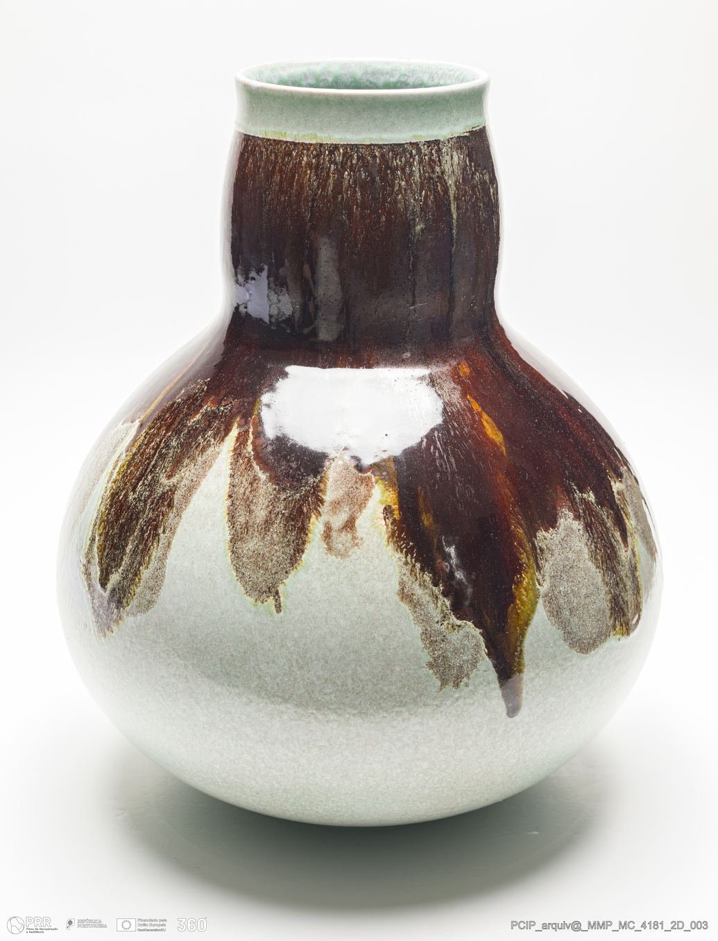 Matéria/Técnica: Barro vermelho rodado. Vidrado polícromo: castanho e verde; Cronologia: século XX; Autoria: Desconhecido / Itália; Dimensões (cm): Altura: 38,5; Diâmetro: 31,5.