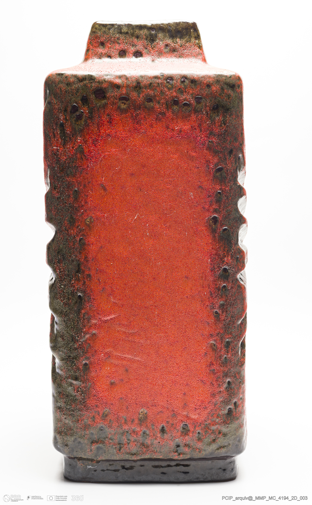 Matéria/Técnica: Barro vermelho moldado. Vidrado polícromo: castanho, verde e vermelho; Cronologia: 1945-1984; Autoria: Desconhecido / Carstens / Alemanha; Dimensões (cm): Altura: 50; Largura: 21,5; Comprimento: 22.