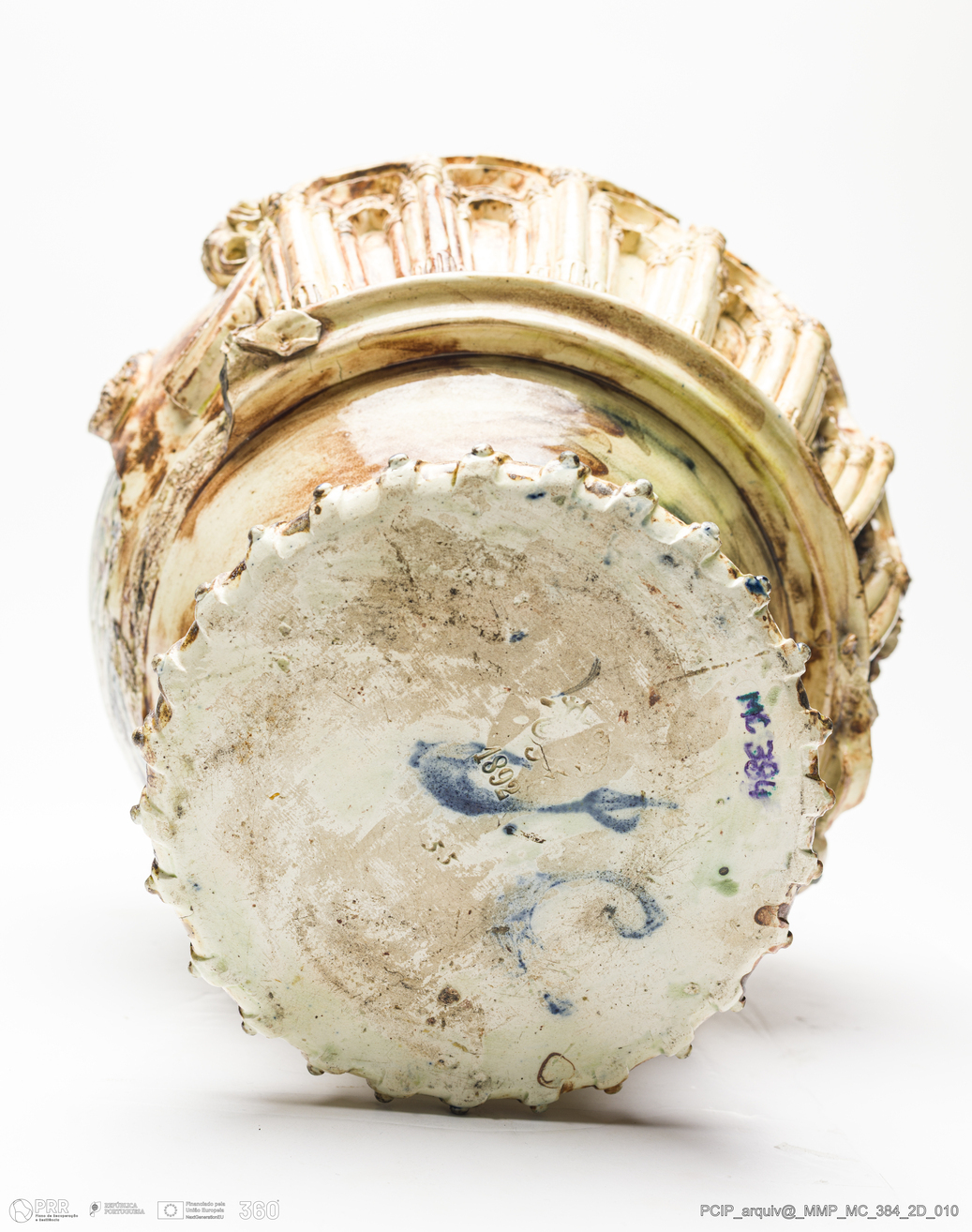 Matéria/Técnica: Barro branco rodado e modeladoVidrado polícromo: camurça, castanho e branco; Cronologia: 1892; Autoria: Rafael Bordalo Pinheiro e José Carlos dos Santos / Fábrica de Faianças das Caldas da Rainha, Portugal; Dimensões (cm): Altura: 30,9; Largura: 27,5.