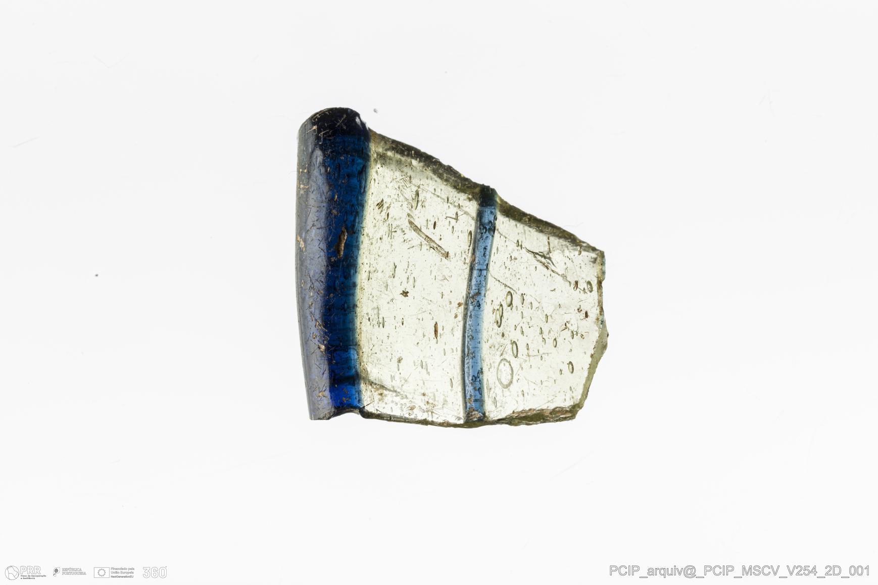 Matéria/Técnica: Vidro; Cronologia: Século XVII; Autoria: Desconhecida; Dimensões: Comprimento: 18mm; Largura: 15mm.