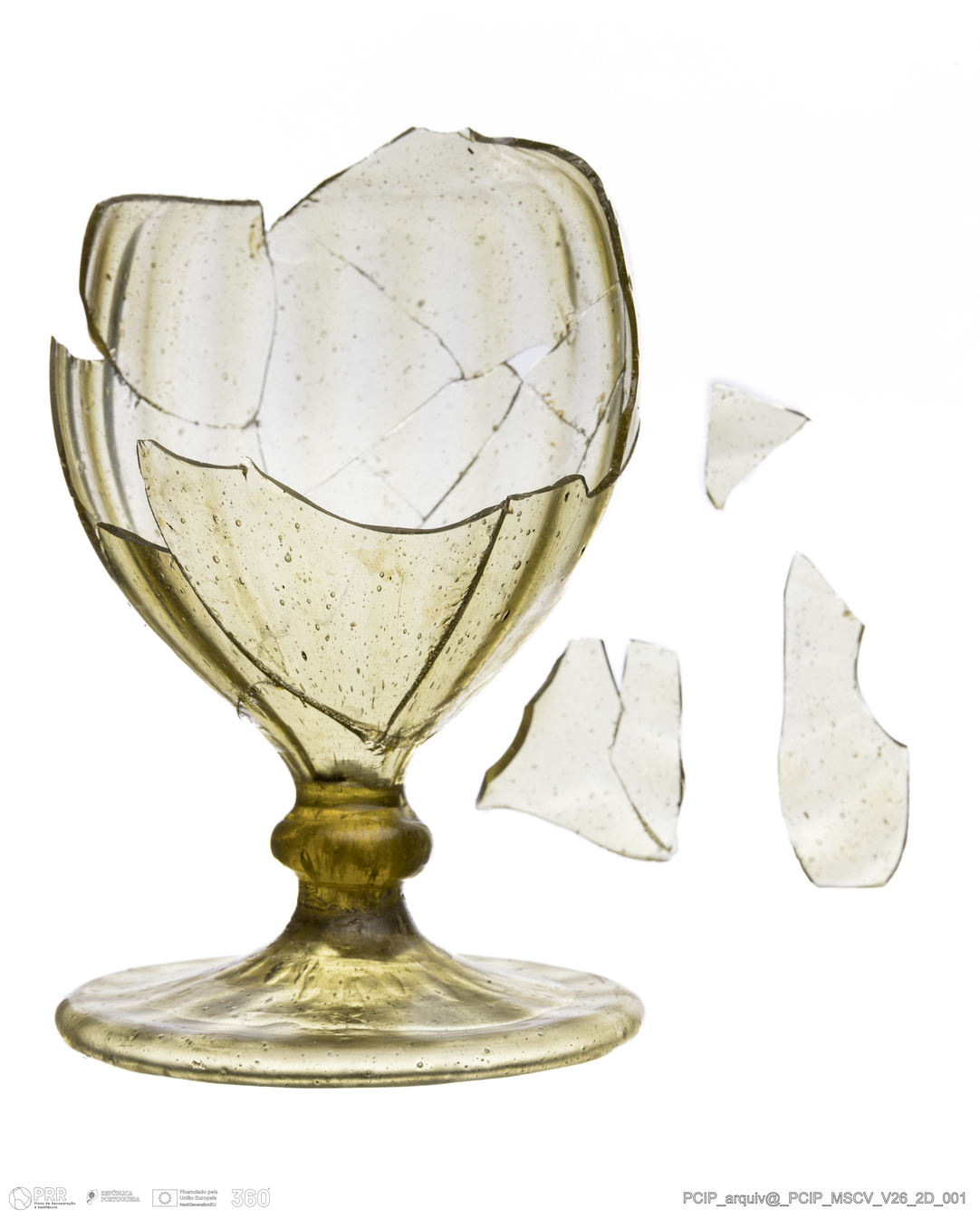 Matéria/Técnica: Vidro; Cronologia: Século XVII; Autoria: Desconhecida; Dimensões: Diâmetro base: 74mm.