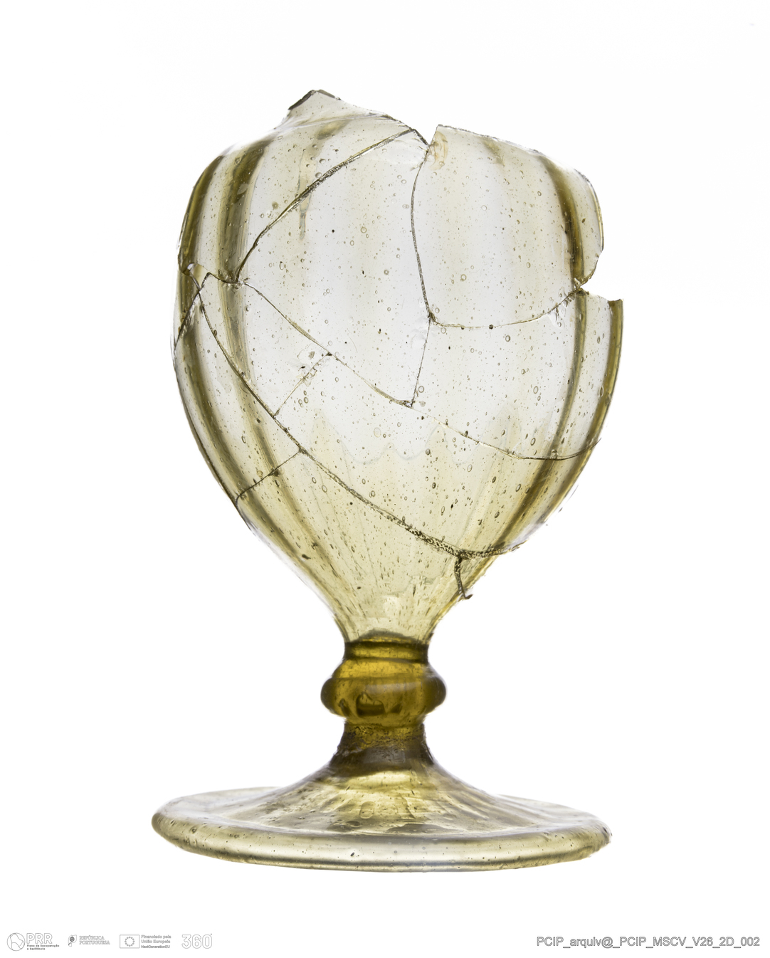 Matéria/Técnica: Vidro; Cronologia: Século XVII; Autoria: Desconhecida; Dimensões: Diâmetro base: 74mm.