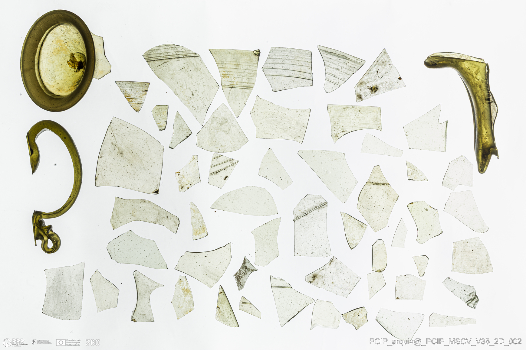 Matéria/Técnica: Vidro; Cronologia: Século XVII; Autoria: Desconhecida; Dimensões: Diâmetro bordo: 100mm; Diâmetro base: 54mm.