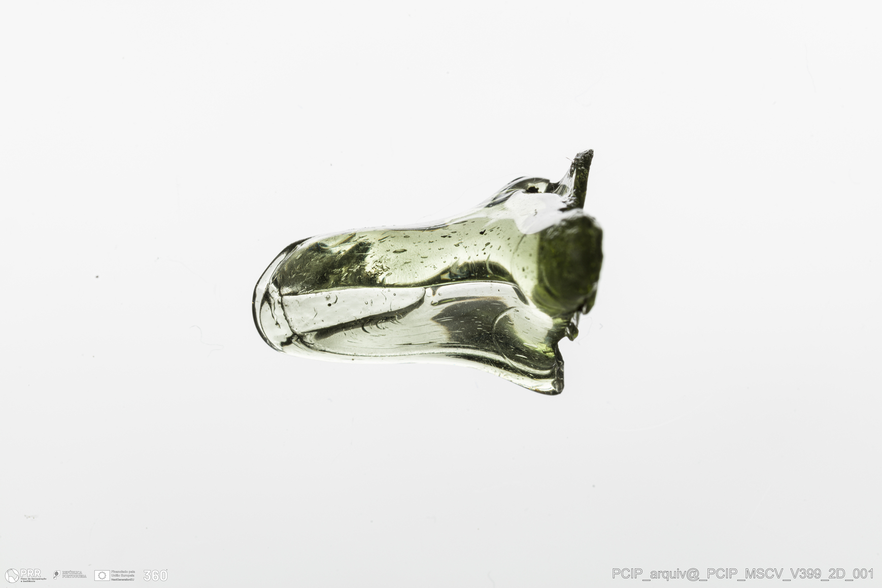 Matéria/Técnica: Vidro; Cronologia: Século XVII; Autoria: Desconhecida; Dimensões: Largura: 19mm; Altura: 20mm.