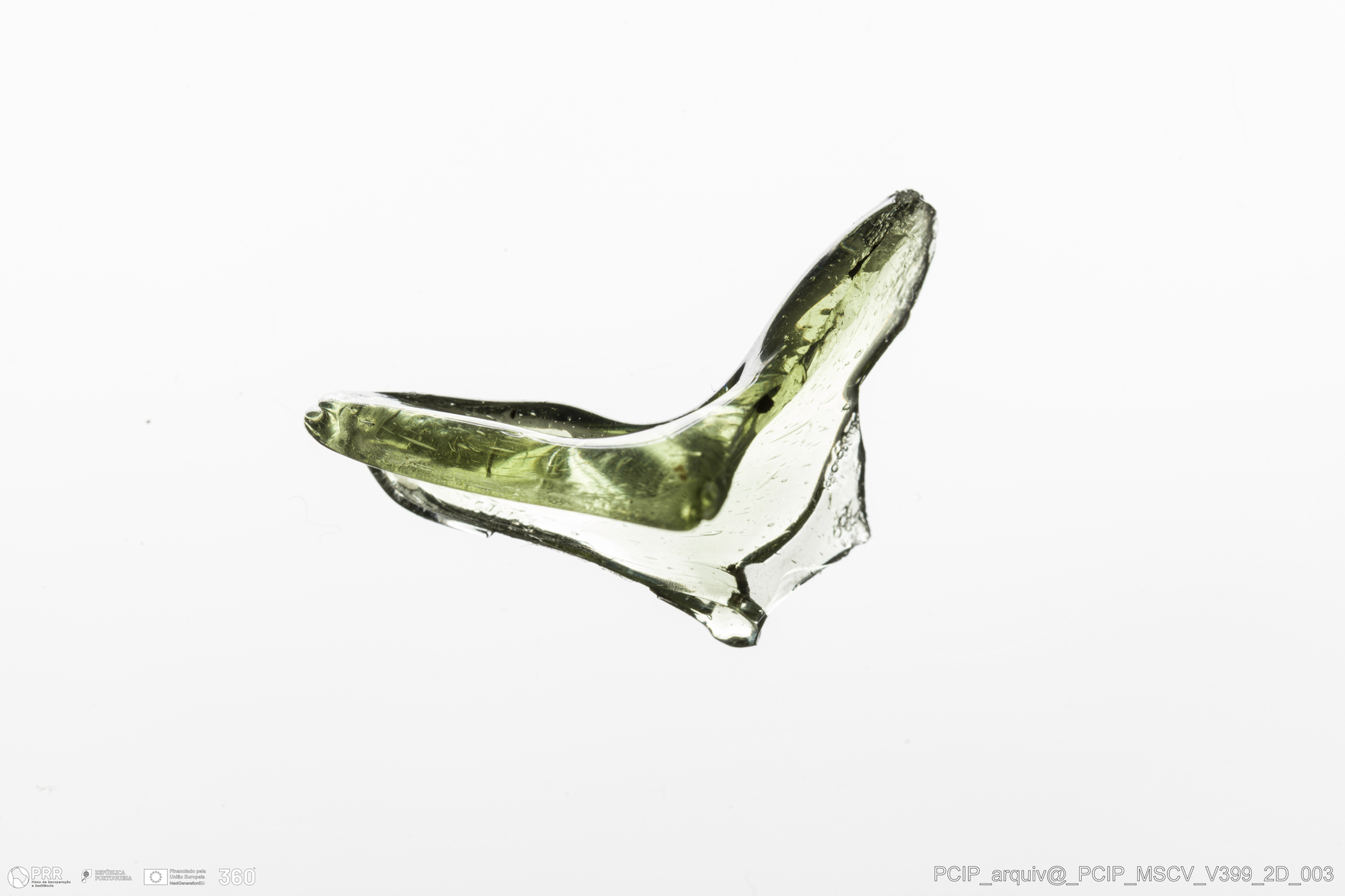 Matéria/Técnica: Vidro; Cronologia: Século XVII; Autoria: Desconhecida; Dimensões: Largura: 19mm; Altura: 20mm.