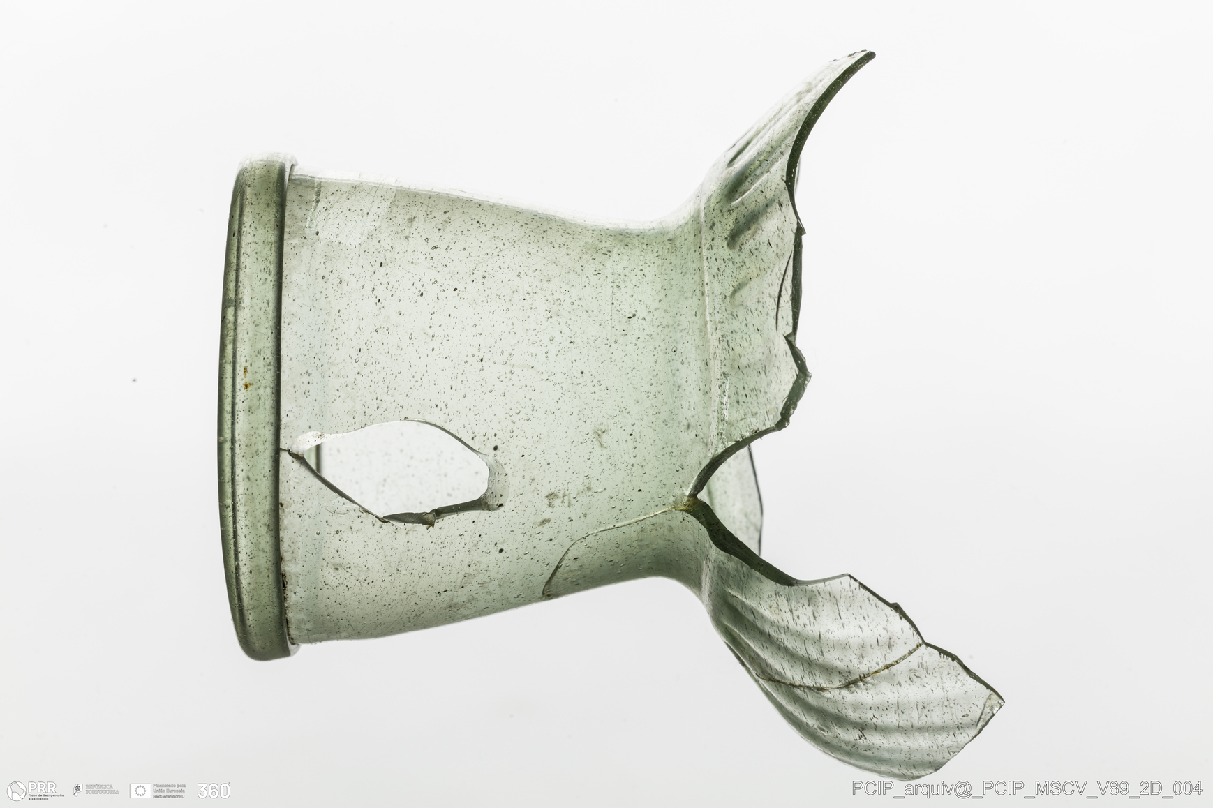Matéria/Técnica: Vidro; Cronologia: Século XVII; Autoria: Desconhecida; Dimensões: Diâmetro bordo: 66mm.