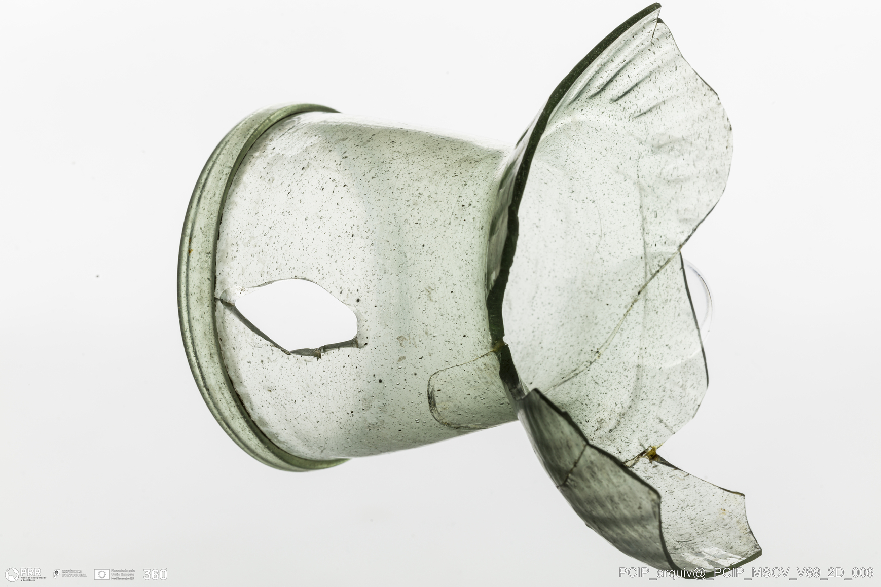 Matéria/Técnica: Vidro; Cronologia: Século XVII; Autoria: Desconhecida; Dimensões: Diâmetro bordo: 66mm.
