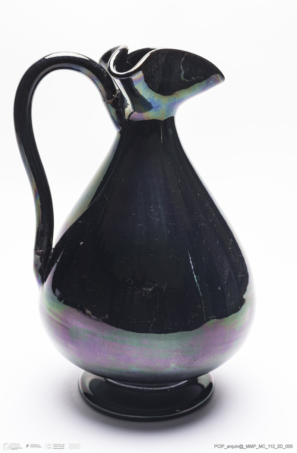 Matéria/Técnica: Barro vermelho moldado. Vidrado monocromo a preto; Cronologia: século XX; Autoria: Rafael Bordalo Pinheiro / Fábrica de Faianças das Caldas da Rainha, Portugal; Dimensões (cm): Altura: 24; Largura: 18.