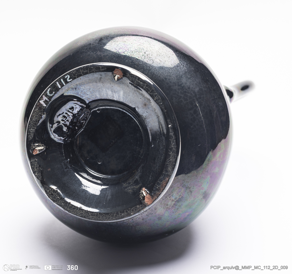 Matéria/Técnica: Barro vermelho moldado. Vidrado monocromo a preto; Cronologia: século XX; Autoria: Rafael Bordalo Pinheiro / Fábrica de Faianças das Caldas da Rainha, Portugal; Dimensões (cm): Altura: 24; Largura: 18.