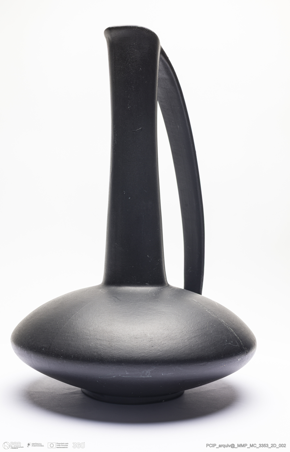 Matéria/Técnica: Barro branco moldado. Pintura a frio monocroma a preto; Cronologia: Século XX; Autoria: Desconhecido / Áustria; Dimensões (cm): Altura: 34; Diâmetro: 21,5.