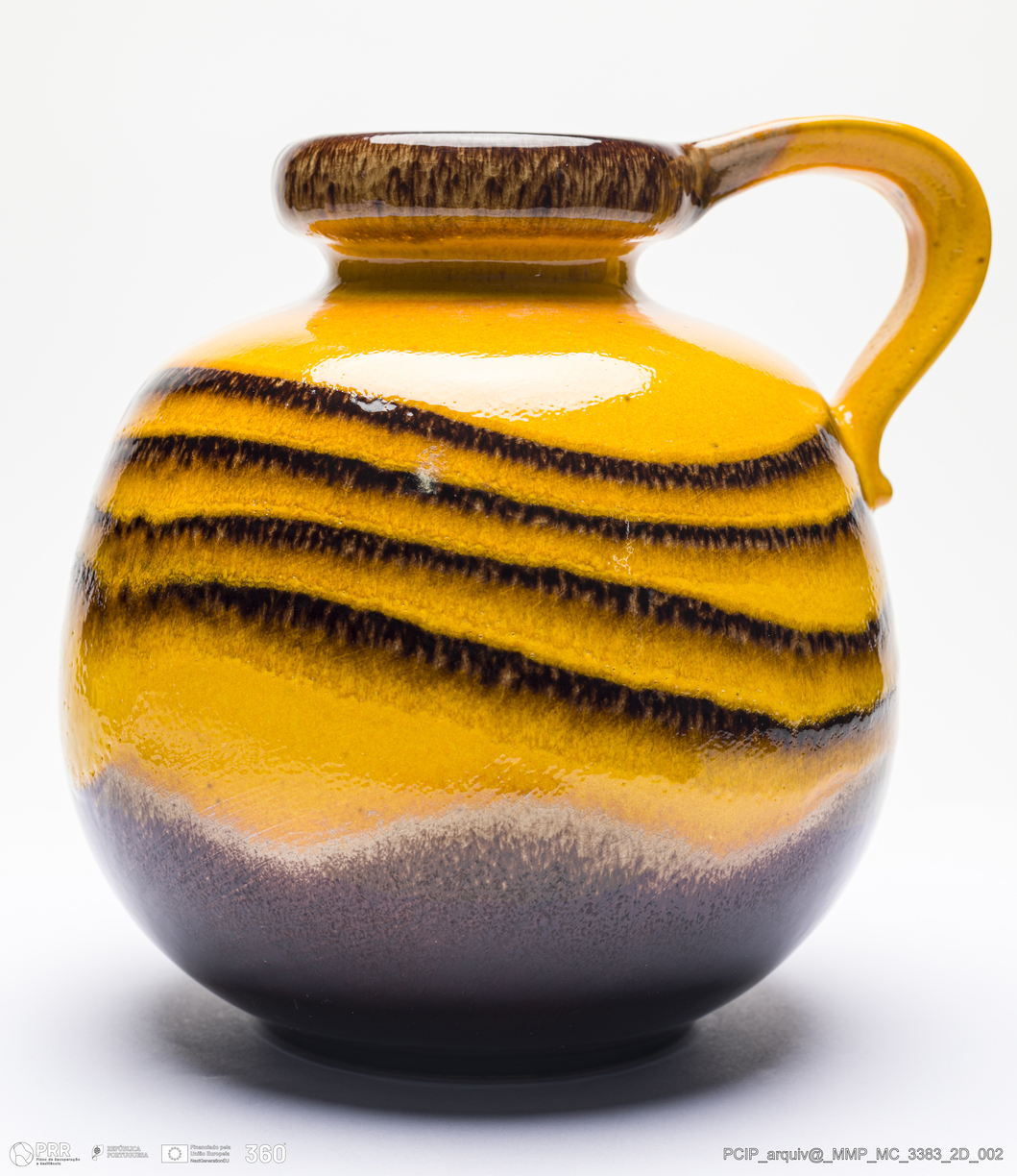 Matéria/Técnica: Faiança moldada. Vidrado polícromo com escorridos: castanho e amarelo; Cronologia: 1960-1970; Autoria: Desconhecido / Scheurich, Alemanha; Dimensões (cm): Altura: 22,2; Largura: 21,4; Comprimento: 23.