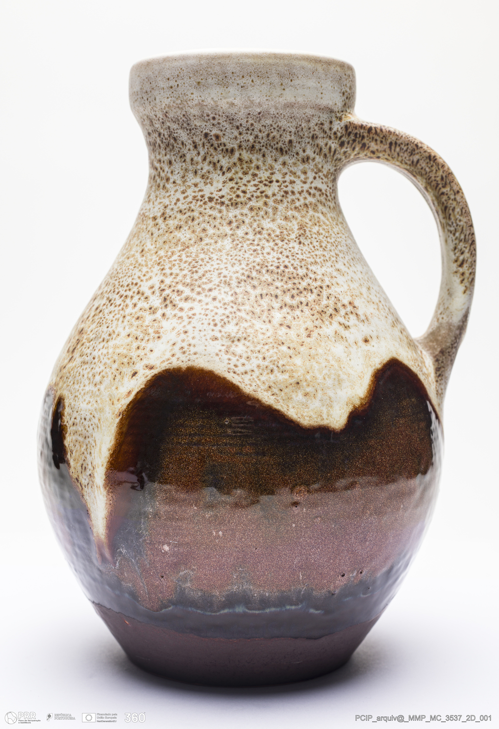 Matéria/Técnica: Barro vermelho rodado. Vidrado polícromo: castanho escuro e mel, creme e dourado; Cronologia: 1945-1984; Autoria: Desconhecido / Carstens, Alemanha; Dimensões (cm): Altura: 25,5; Largura: 17; Comprimento: 18,5.