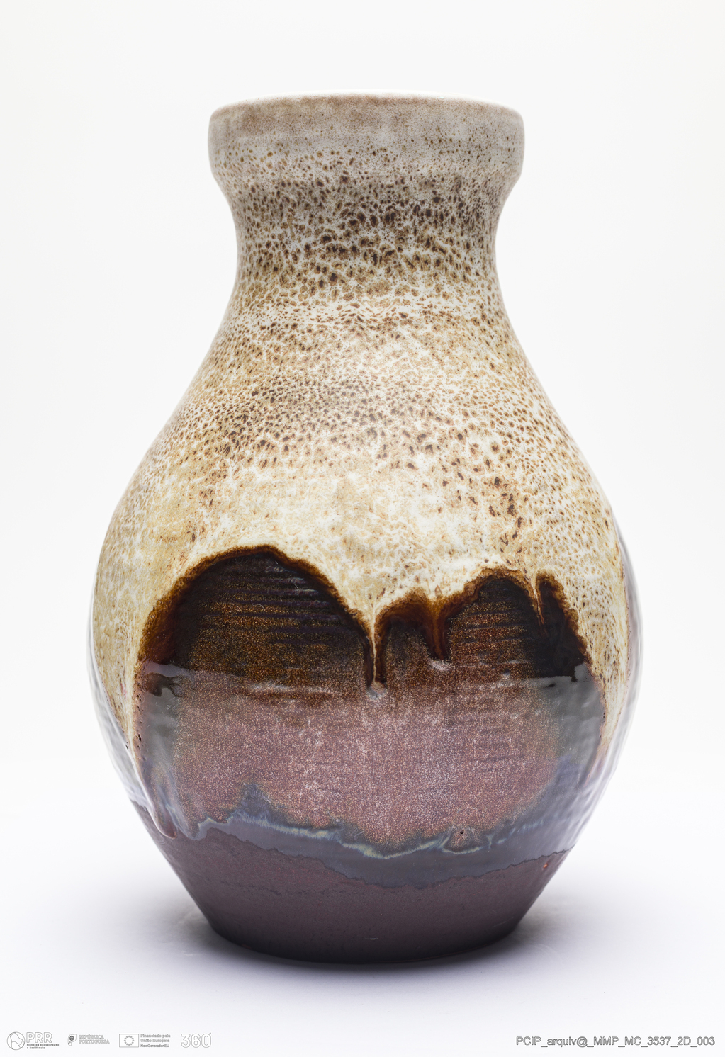 Matéria/Técnica: Barro vermelho rodado. Vidrado polícromo: castanho escuro e mel, creme e dourado; Cronologia: 1945-1984; Autoria: Desconhecido / Carstens, Alemanha; Dimensões (cm): Altura: 25,5; Largura: 17; Comprimento: 18,5.