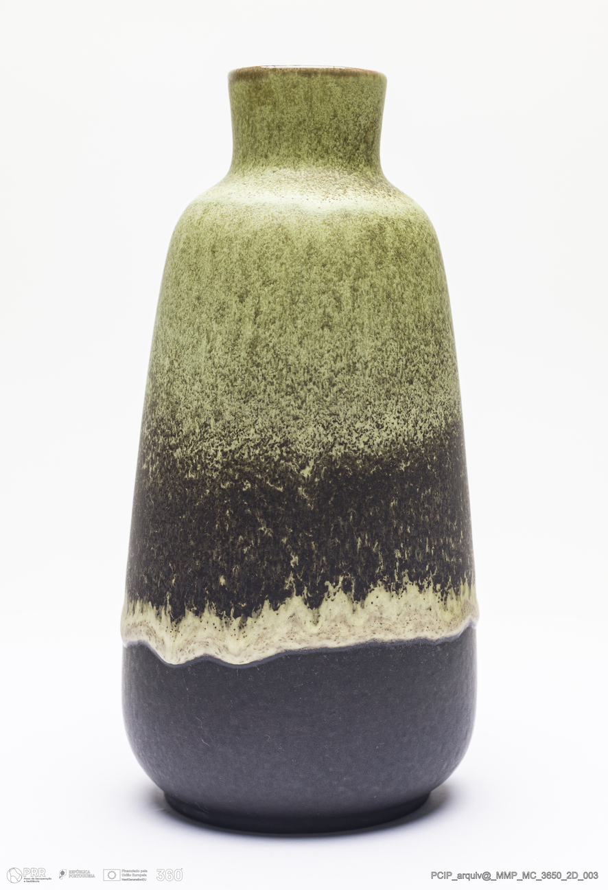 Matéria/Técnica: Barro vermelho moldado. Vidrado polícromo mate: preto e verde; Cronologia: 1960-1970; Autoria: Desconhecido / Scheurich, Alemanha; Dimensões (cm): Altura: 20,5; Largura: 10; Comprimento: 11.