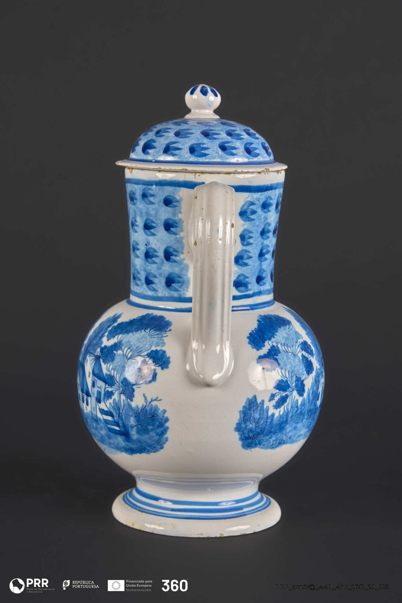 Matéria/Técnica: Peça rodada, moldada e vidrada com decoração por estampilha e esponjado em tons de azul; Cronologia: Desconhecida; Autoria: Desconhecida; Dimensões: Desconhecidas.