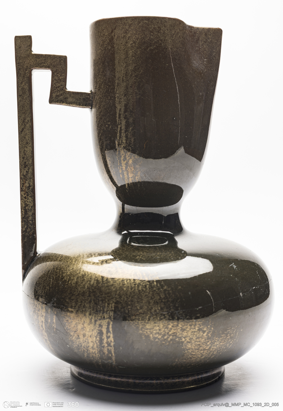 Matéria/Técnica: Barro vermelho moldado. Vidrado castanho metalizado; Cronologia: 1844-1917; Autoria: Pierre Clément Massier / Fábrica De Golfe Juan, França; Dimensões (cm): Altura: 18,5; Largura: 15.