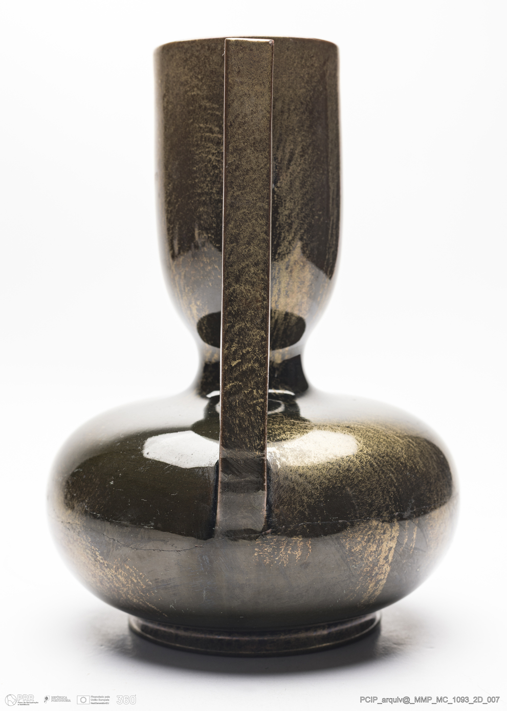 Matéria/Técnica: Barro vermelho moldado. Vidrado castanho metalizado; Cronologia: 1844-1917; Autoria: Pierre Clément Massier / Fábrica De Golfe Juan, França; Dimensões (cm): Altura: 18,5; Largura: 15.