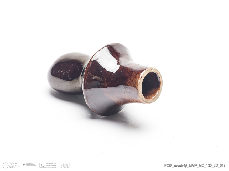 Matéria/Técnica: Barro vermelho moldado e modelado. Vidrado polícromo: castanho e verde; Cronologia: 1911; Autoria: Manuel Gustavo Bordalo Pinheiro / Fábrica Bordalo Pinheiro, Caldas da Rainha, Portugal; Dimensões (cm): Altura: 26; Largura: 20.