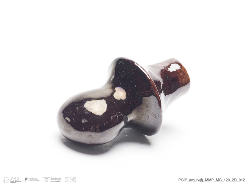 Matéria/Técnica: Barro vermelho moldado e modelado. Vidrado polícromo: castanho e verde; Cronologia: 1911; Autoria: Manuel Gustavo Bordalo Pinheiro / Fábrica Bordalo Pinheiro, Caldas da Rainha, Portugal; Dimensões (cm): Altura: 26; Largura: 20.