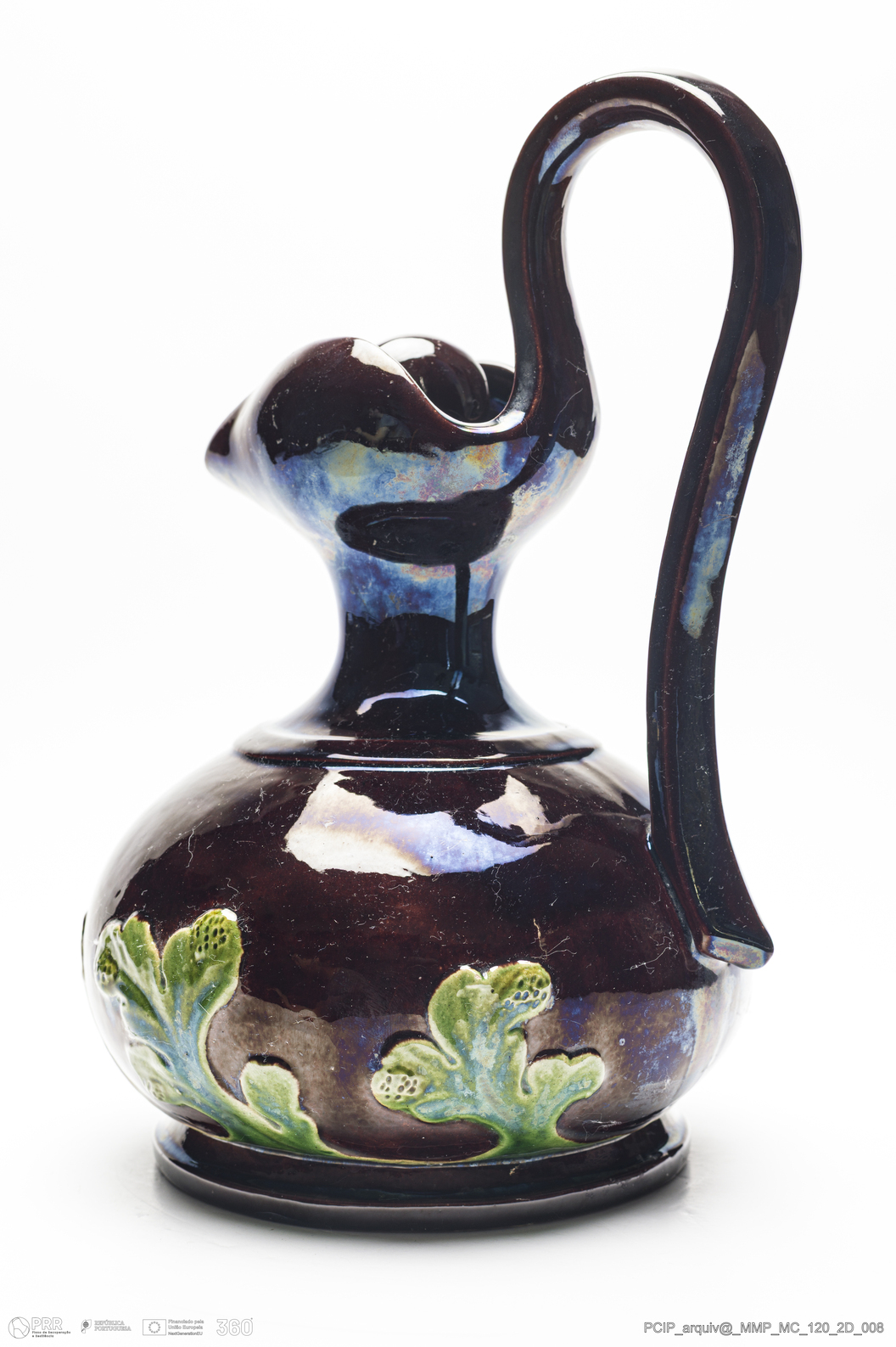 Matéria/Técnica: Barro vermelho moldado e modelado. Vidrado polícromo: castanho e verde; Cronologia: 1911; Autoria: Manuel Gustavo Bordalo Pinheiro / Fábrica Bordalo Pinheiro, Caldas da Rainha, Portugal; Dimensões (cm): Altura: 26; Largura: 20.