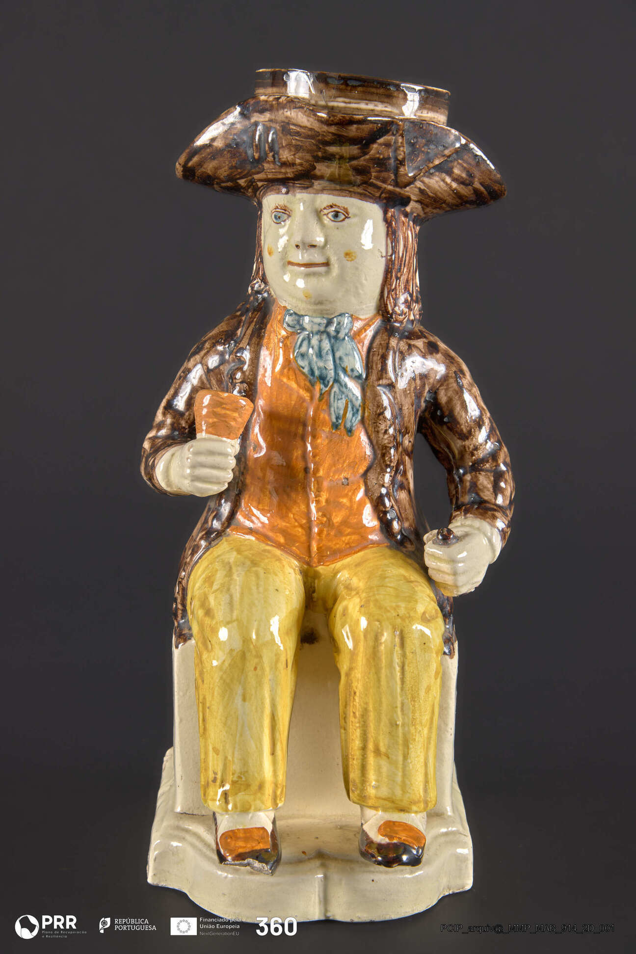 Matéria/Técnica: Faiança moldada, vidrada e policromada; Cronologia: Desconhecida; Autoria: Desconhecida; Dimensões: Desconhecidas.
