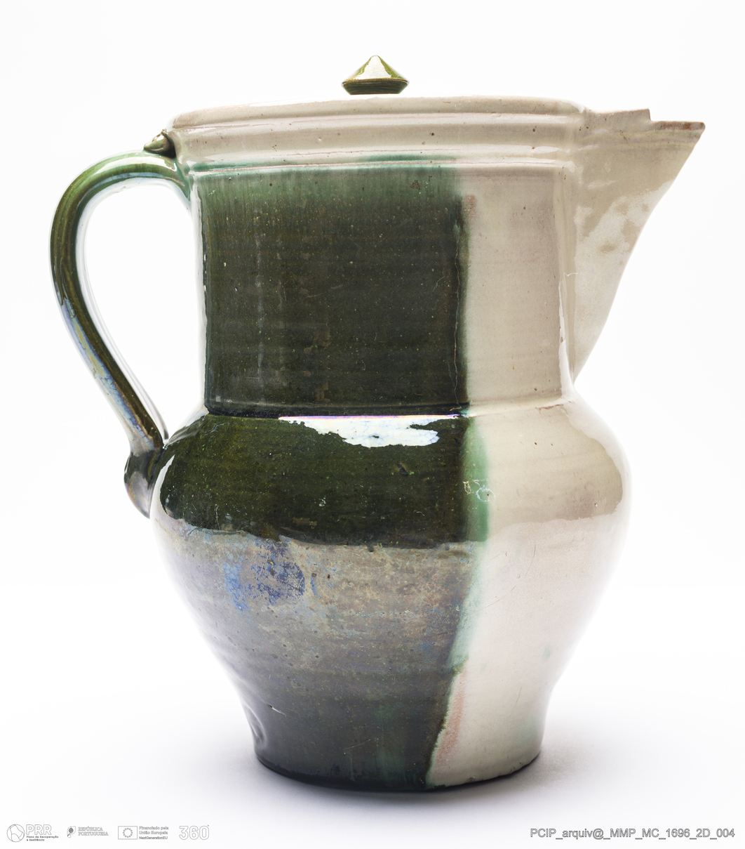 Matéria/Técnica: Barro vermelho rodado e modelado. Vidrado polícromo: camurça no interior, branco de estanho e verde de cobre no exterior; Cronologia: século XX; Autoria: Desconhecido / Caldas da Rainha; Dimensões (cm): Altura: 25; Largura: 23,6.