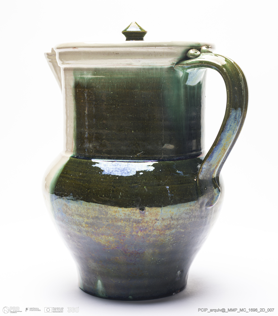 Matéria/Técnica: Barro vermelho rodado e modelado. Vidrado polícromo: camurça no interior, branco de estanho e verde de cobre no exterior; Cronologia: século XX; Autoria: Desconhecido / Caldas da Rainha; Dimensões (cm): Altura: 25; Largura: 23,6.