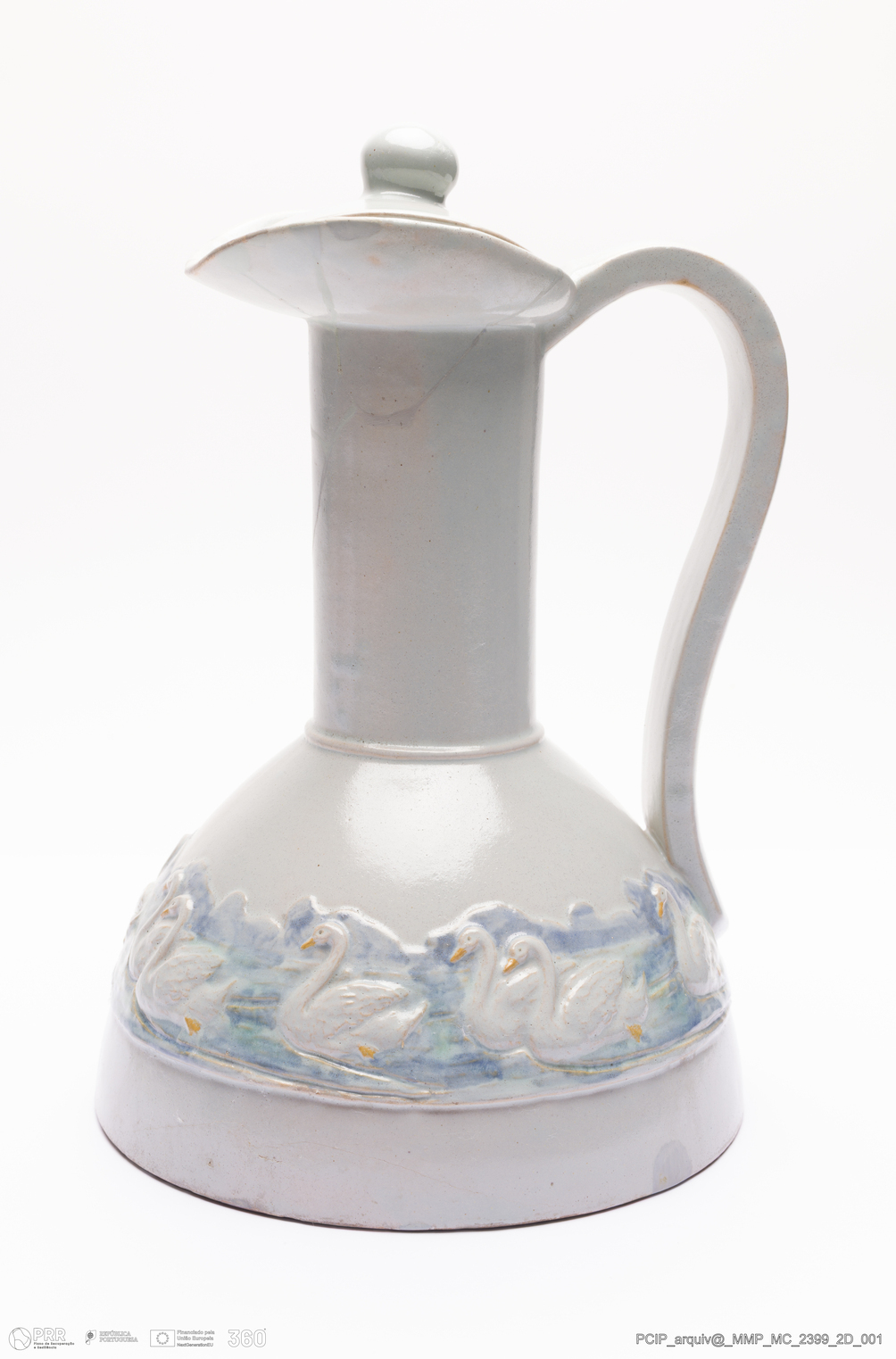 Matéria/Técnica: Barro vermelho modelado e moldado. Vidrado polícromo: branco anilado e azul; Cronologia: 1907; Autoria: Manuel Gustavo Bordalo Pinheiro / Fábrica de Faianças das Caldas da Rainha, Portugal; Dimensões (cm): Altura: 25; Largura: 17; Comprimento: 17.