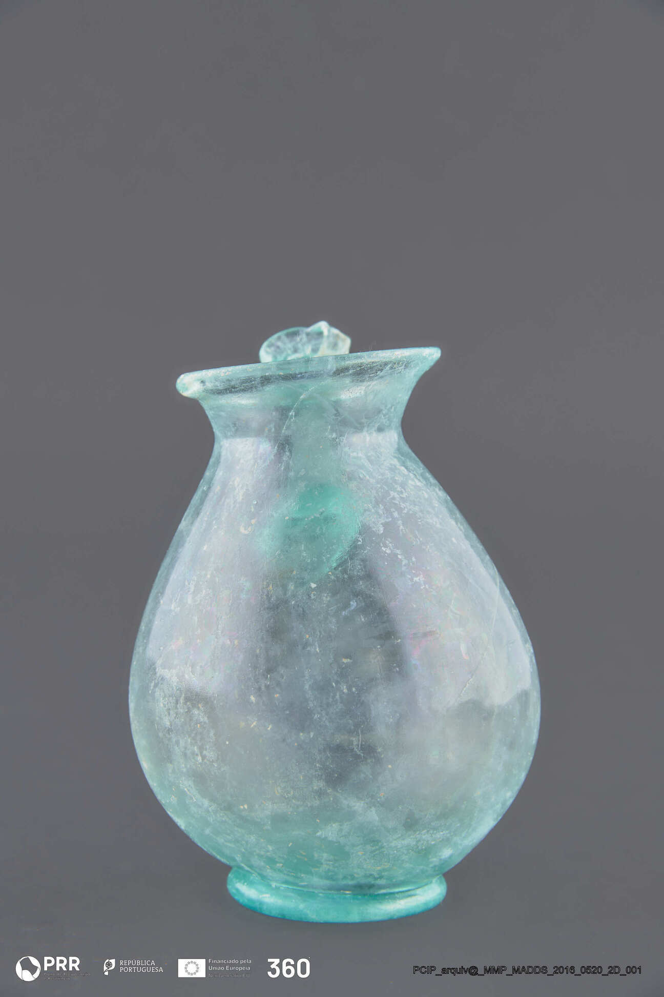 Matéria/Técnica: Vidro; Cronologia: Século III d.C; Autoria: Desconhecida; Dimensões (cm): 11 x 9 x 8.