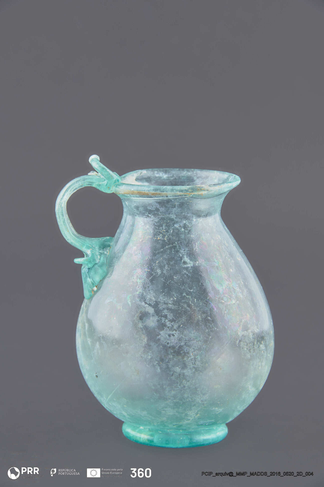 Matéria/Técnica: Vidro; Cronologia: Século III d.C; Autoria: Desconhecida; Dimensões (cm): 11 x 9 x 8.