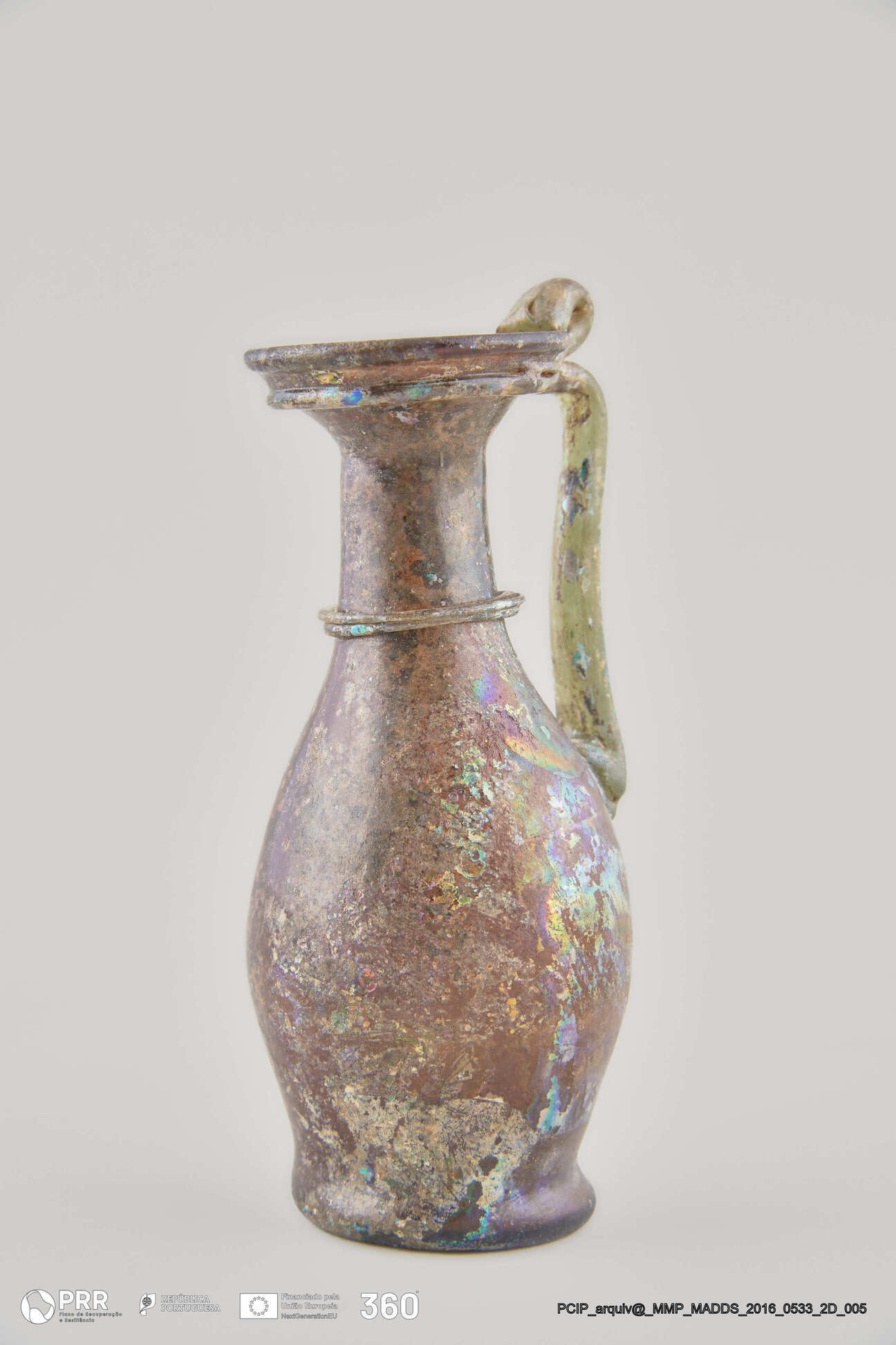Matéria/Técnica: Vidro; Cronologia: Século III - IV d.C; Autoria: Desconhecida; Dimensões (cm): 13 x 6 x 5.