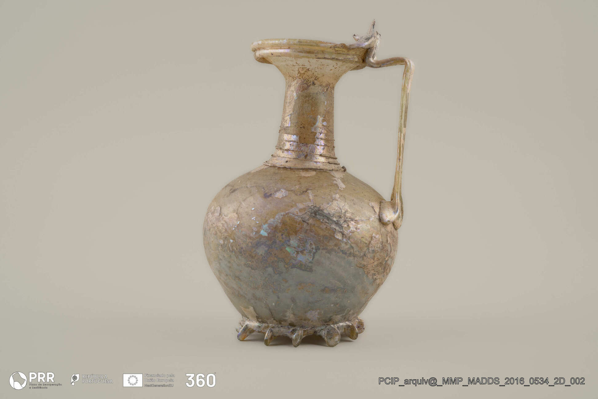Matéria/Técnica: Vidro; Cronologia: Século IV d.C; Autoria: Desconhecida; Dimensões (cm): 16 x 11 x 11.