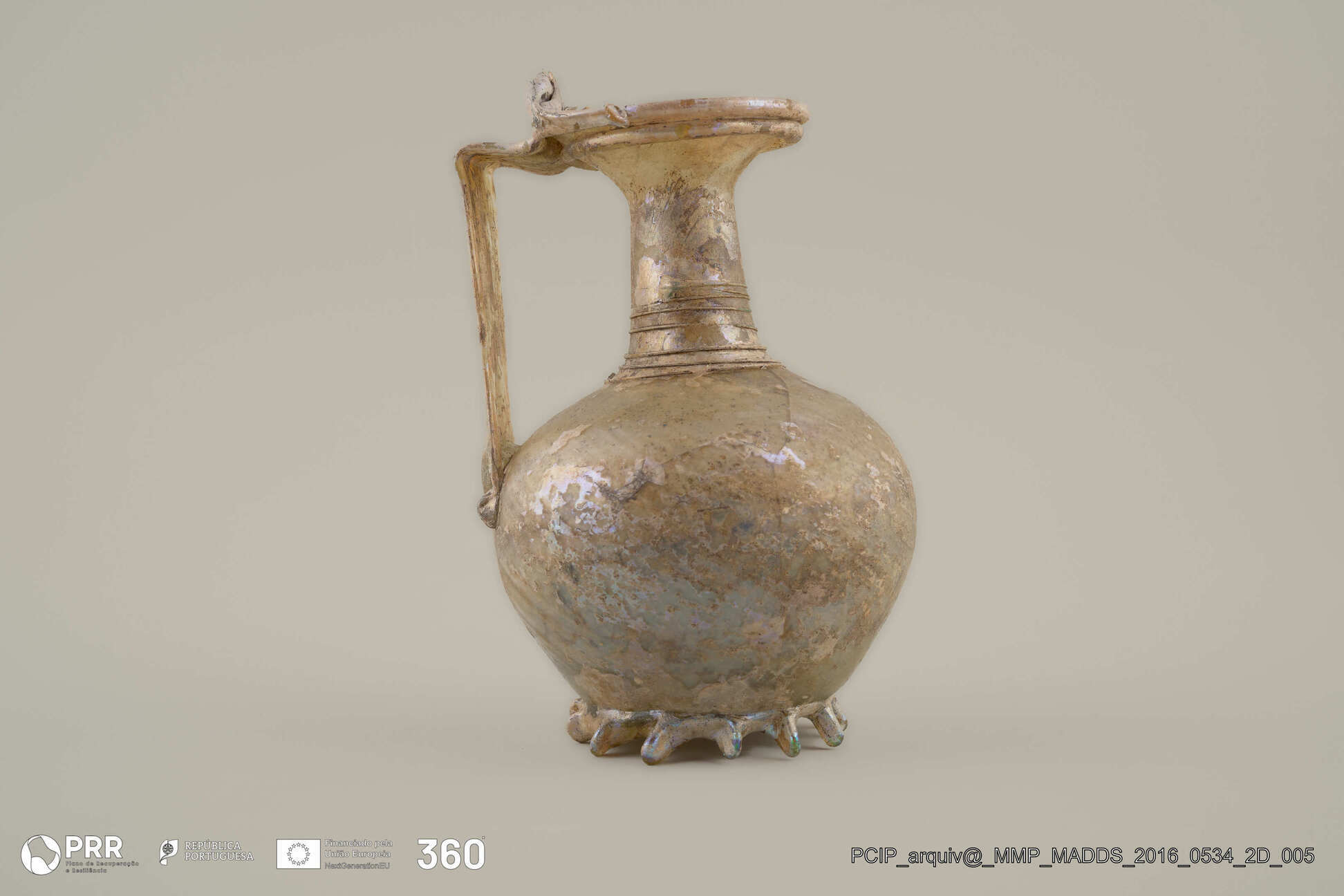 Matéria/Técnica: Vidro; Cronologia: Século IV d.C; Autoria: Desconhecida; Dimensões (cm): 16 x 11 x 11.
