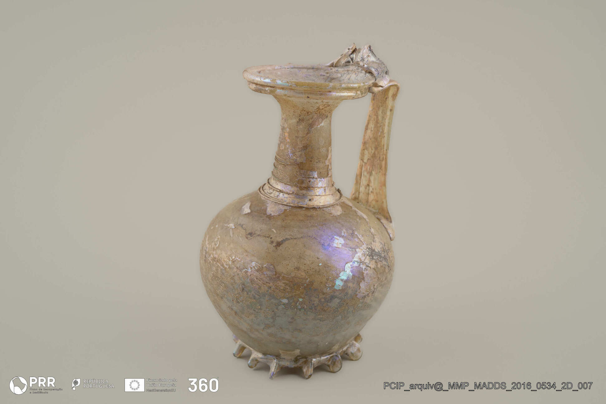 Matéria/Técnica: Vidro; Cronologia: Século IV d.C; Autoria: Desconhecida; Dimensões (cm): 16 x 11 x 11.