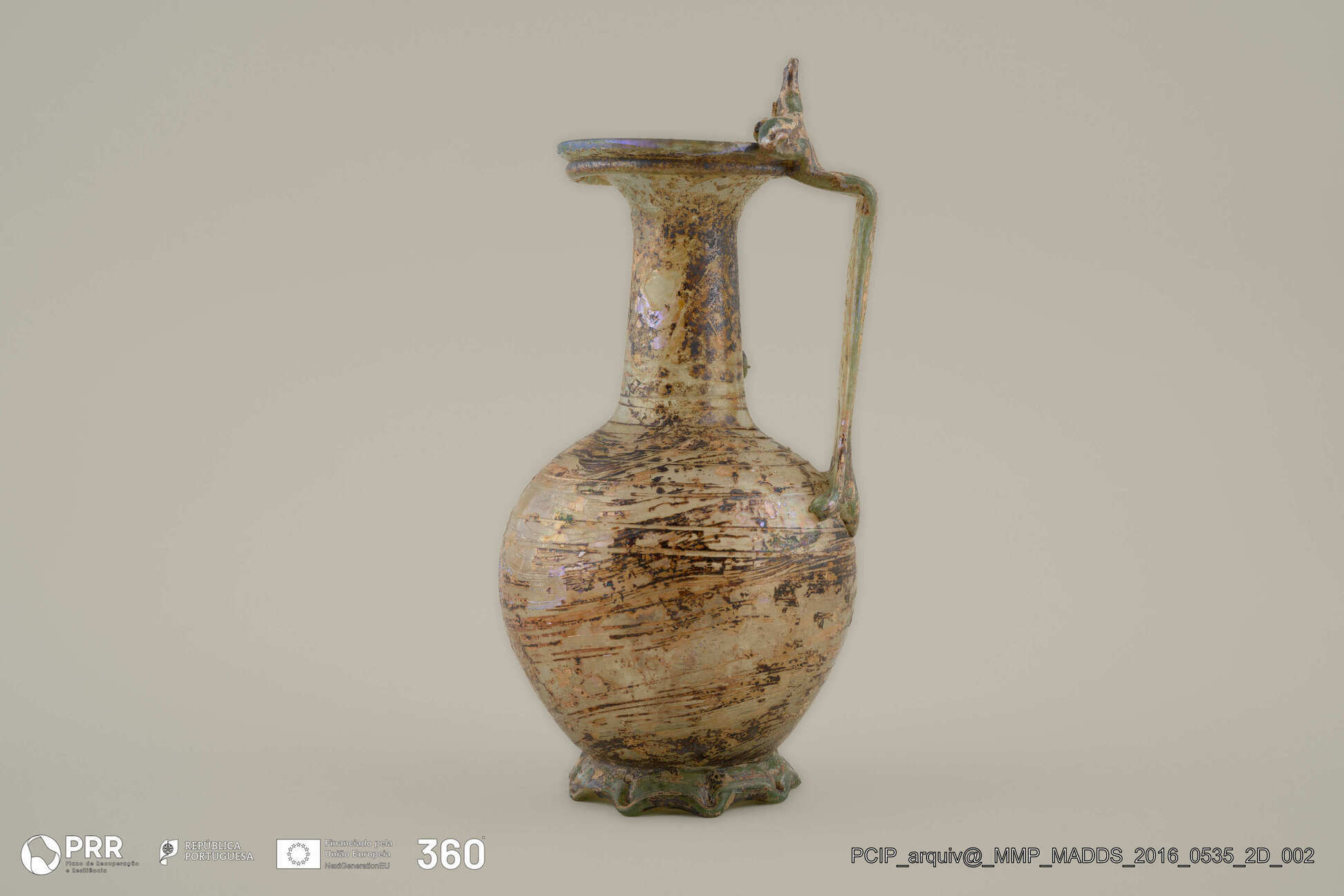 Matéria/Técnica: Vidro; Cronologia: Século IV d.C; Autoria: Desconhecida; Dimensões (cm): 16 x 8 x 8.