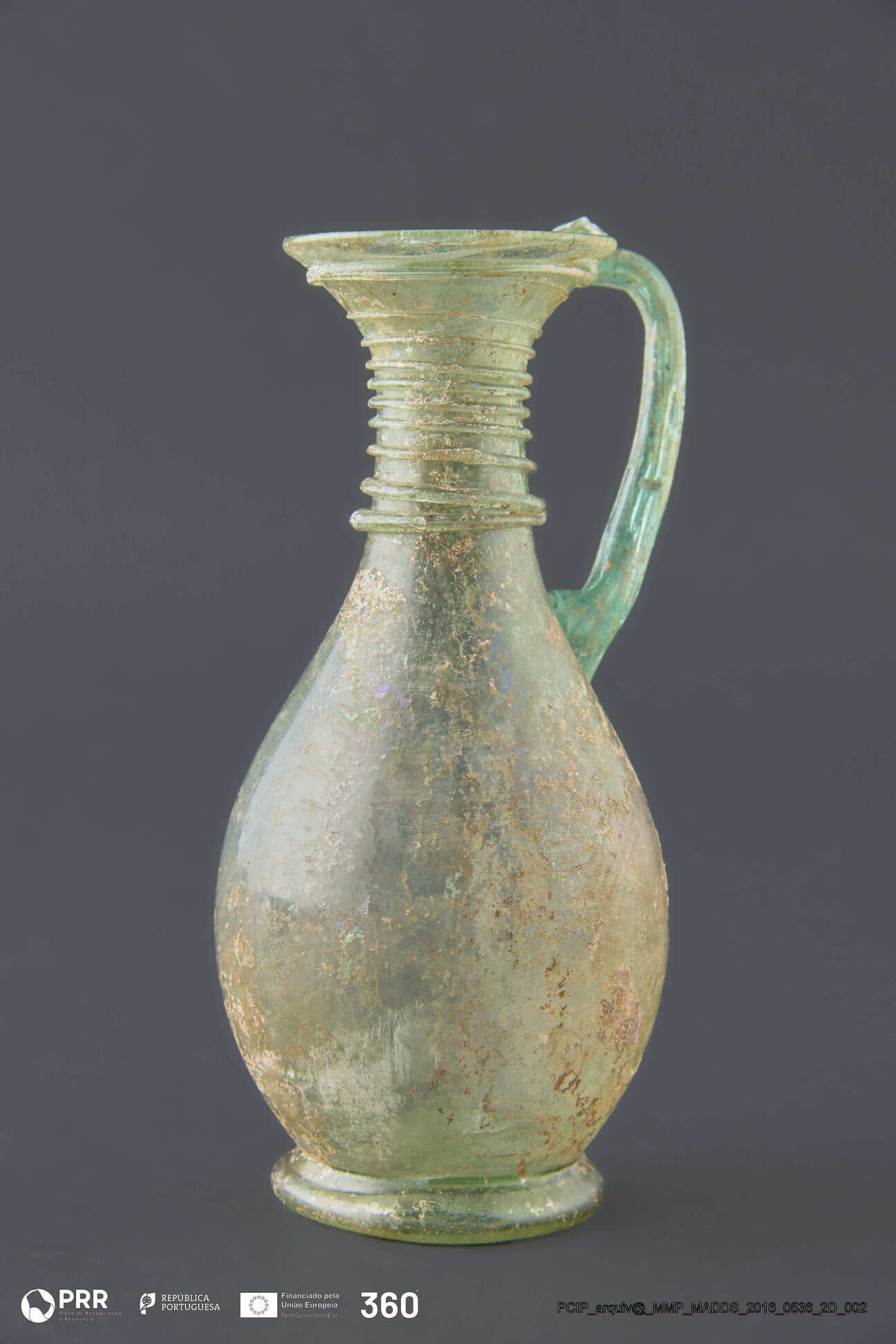 Matéria/Técnica: Vidro; Cronologia: Século IV d.C; Autoria: Desconhecida; Dimensões (cm): 15 x 7 x 7.