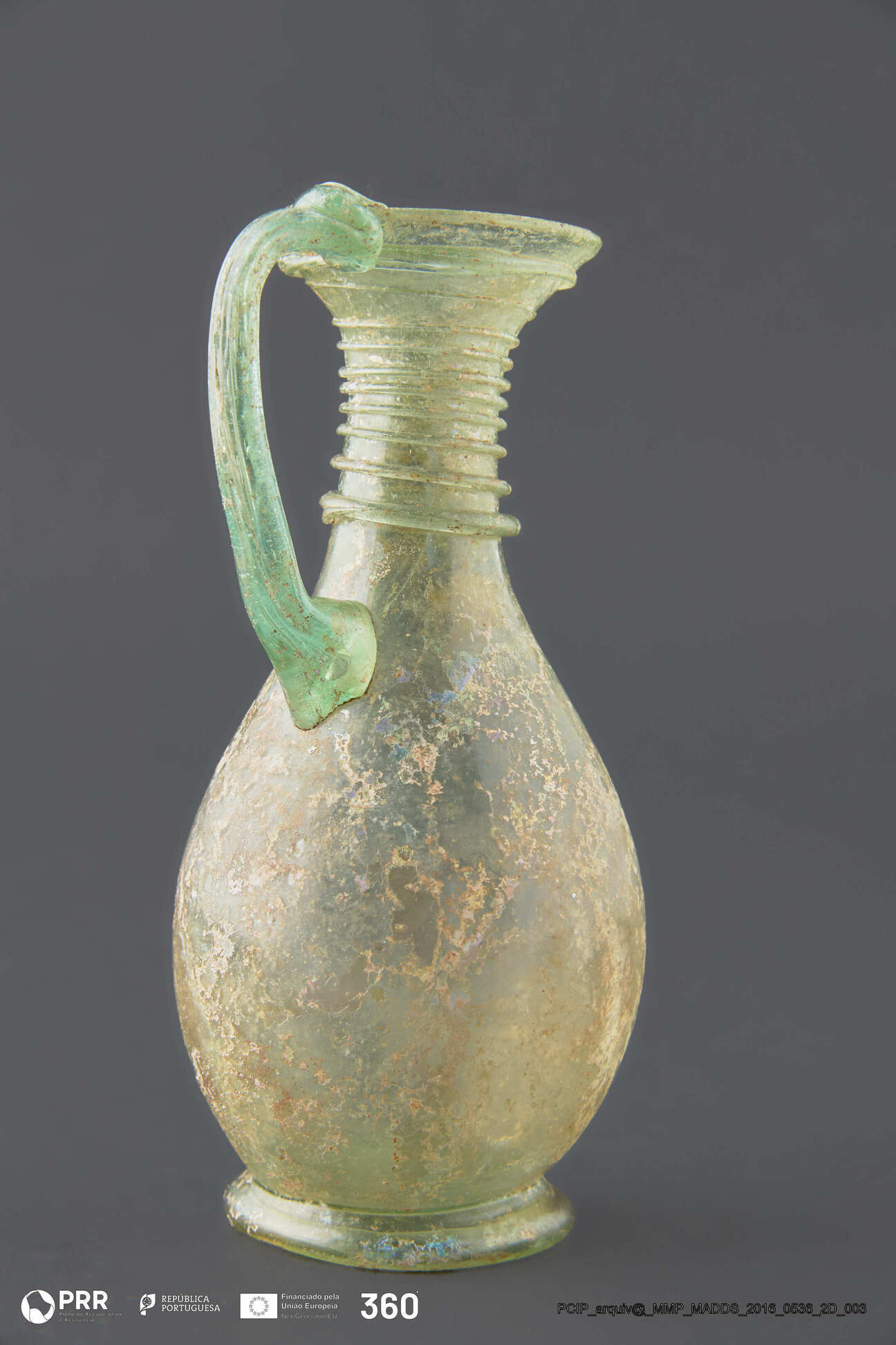 Matéria/Técnica: Vidro; Cronologia: Século IV d.C; Autoria: Desconhecida; Dimensões (cm): 15 x 7 x 7.