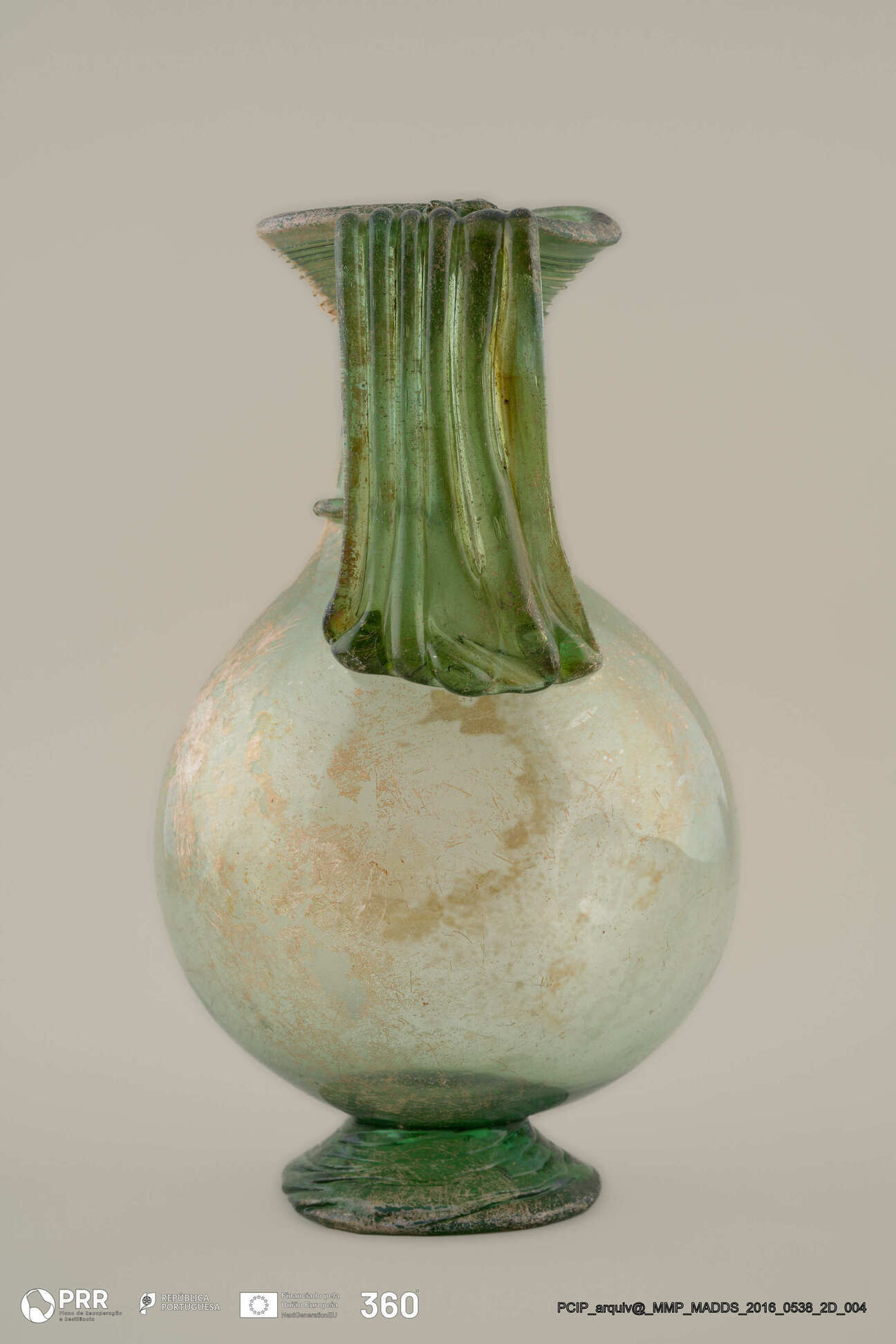 Matéria/Técnica: Vidro; Cronologia: Século V d.C; Autoria: Desconhecida; Dimensões (cm): 25 x 15 x 15.
